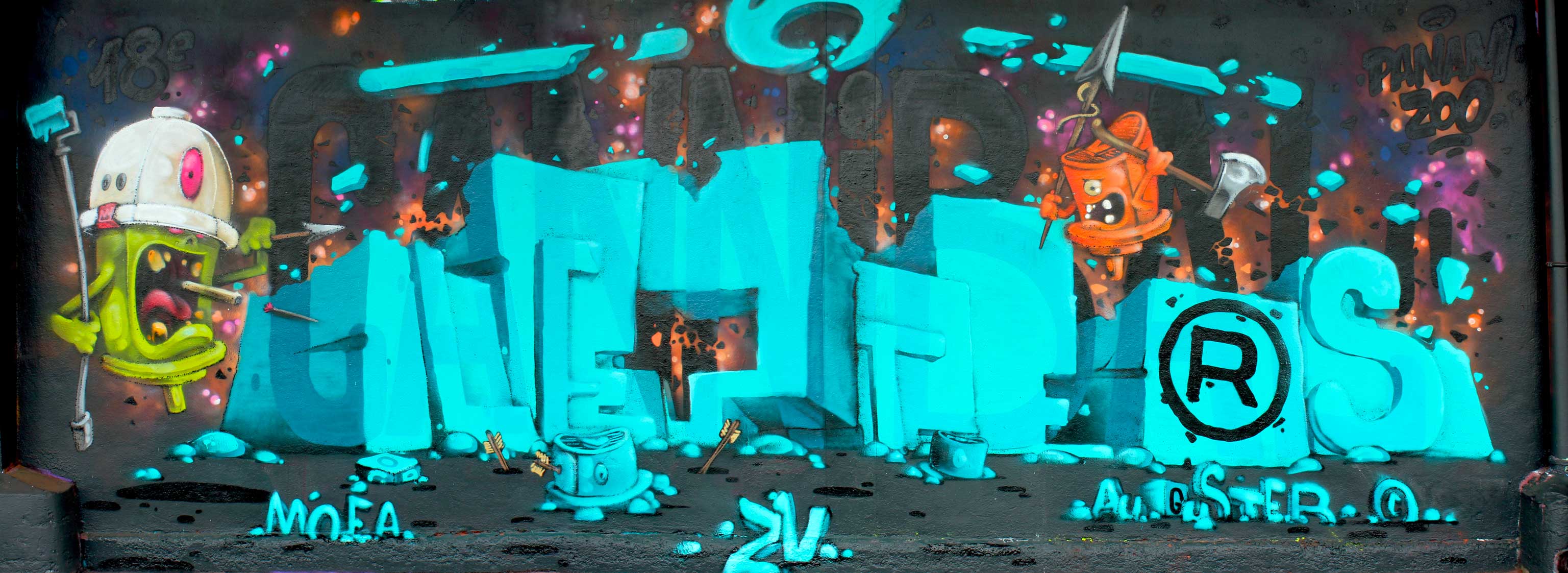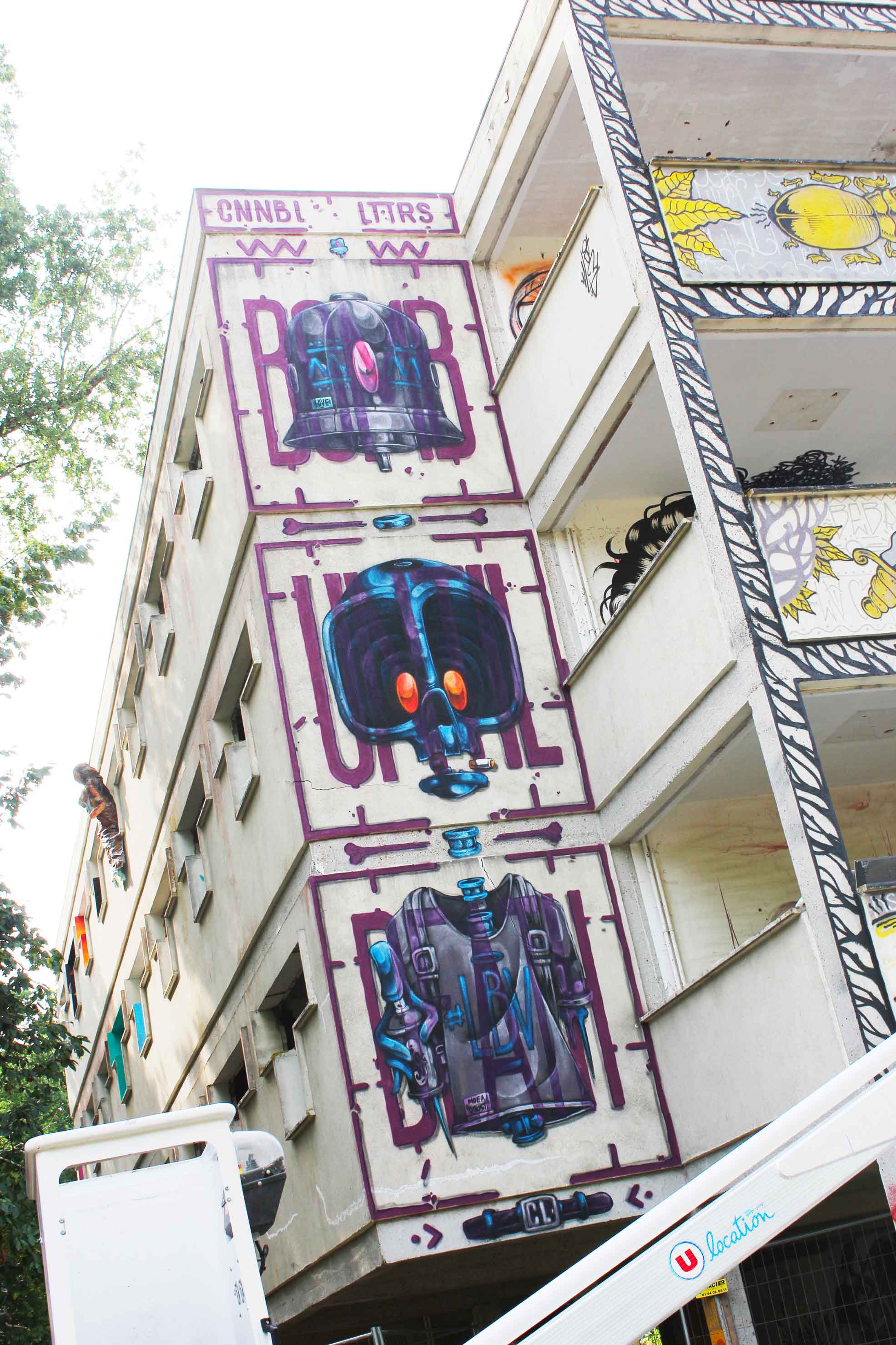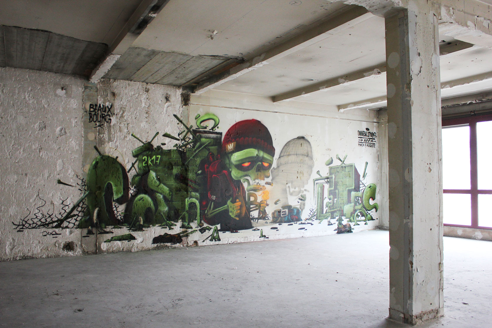 La lettre seule ne s’imposant plus comme seule excuse pour produire, il s’essaie également à toutes les techniques. De la peinture acrylique, à la bombe, du graffiti à la sérigraphie, ou même de la scénographie comme au LAB 14 et a REHAB 2 en essayant de faire évoluer son travail sur chaque projet.