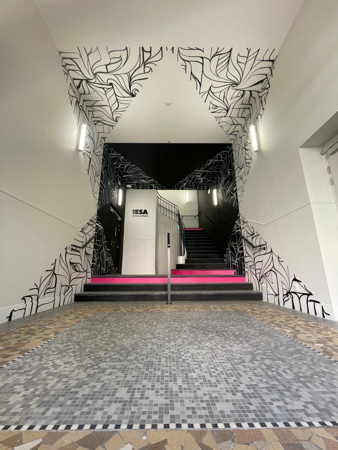 Habillage de l’espace d’accueil et escaliers au sein de l’entreprise Artisan France Fenetre avec l’artiste Zoyer. Dynamiser le bureau et accompagner la montée des escaliers avec un univers abstrait géométrique, reprenant le code couleur de … Read More