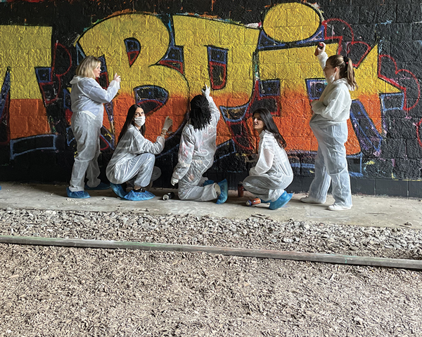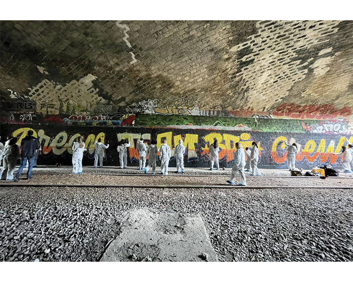 Une balade graffiti en intro avant la réalisation d'une fresque collaborative et participative reprenant leur slogan.