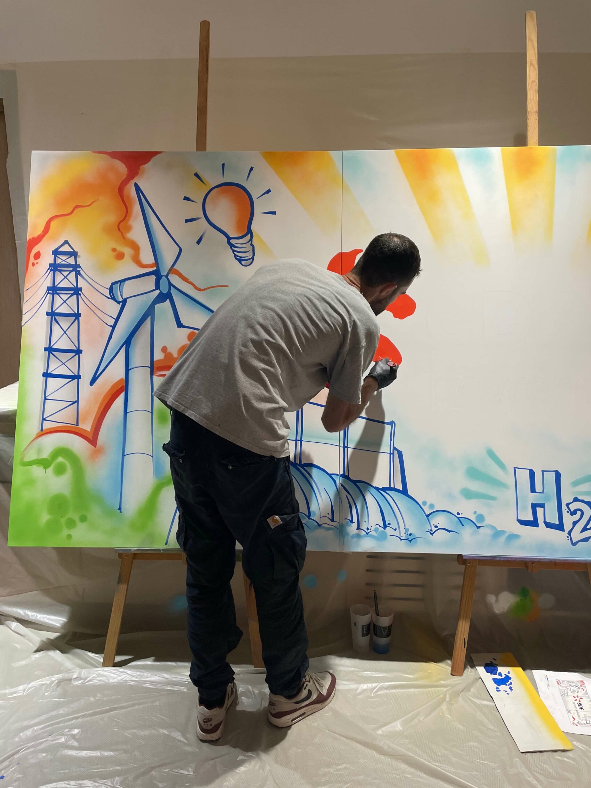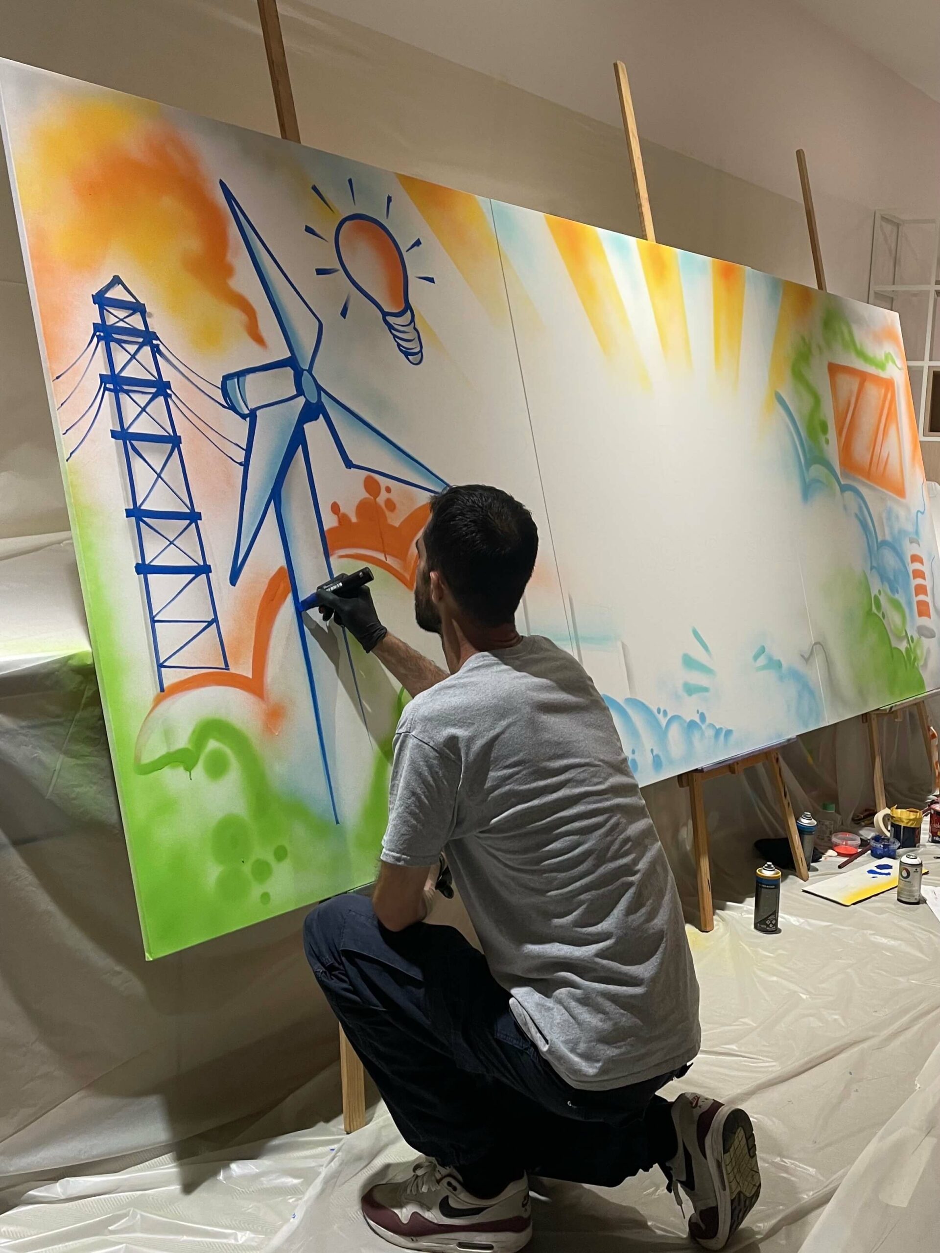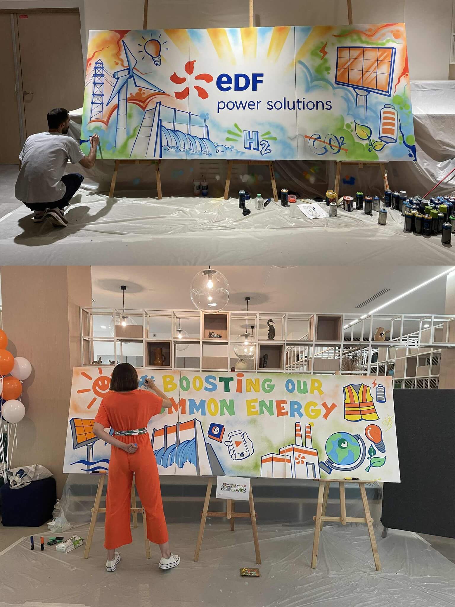 3 villes, 3 performances, 3 moments uniques de partage et de création collective. Nous avons eu le plaisir de réaliser trois performances de live painting pour EDF power solutions à Paris, Béziers et Montpellier. Aux sprays, marqueurs et pinceaux, les artistes Ponè et Ykoner ont donné vie à des triptyques de toiles inspirées des technologies et innovations développées par EDF power solutions. Les toiles rejoignent désormais les locaux d'EDF, où elles continueront de diffuser leur créativité au quotidien. Un grand Merci à toutes les équipes et aux participants pour cette belle aventure humaine et artistique... Et cette énergie partagée !