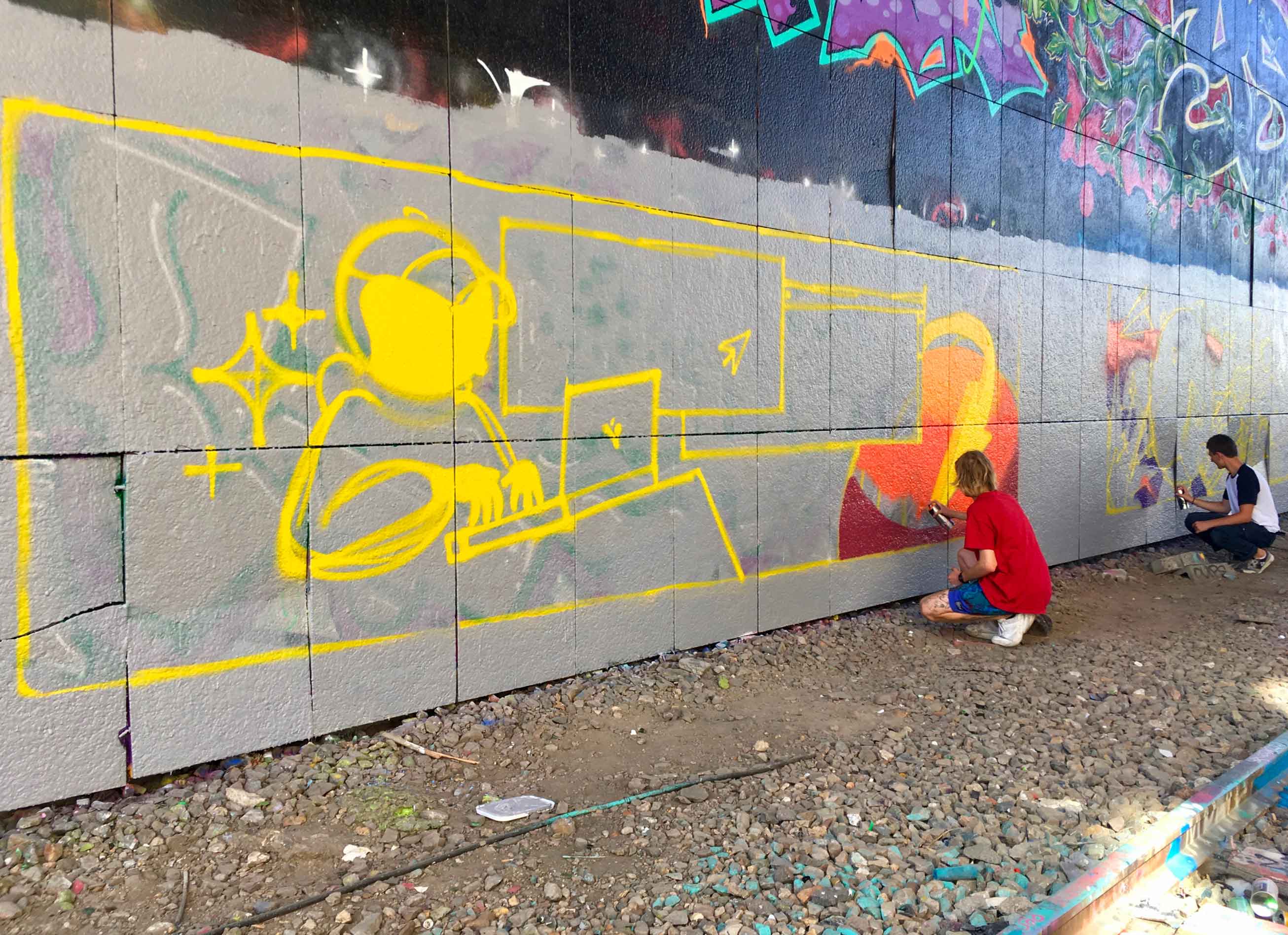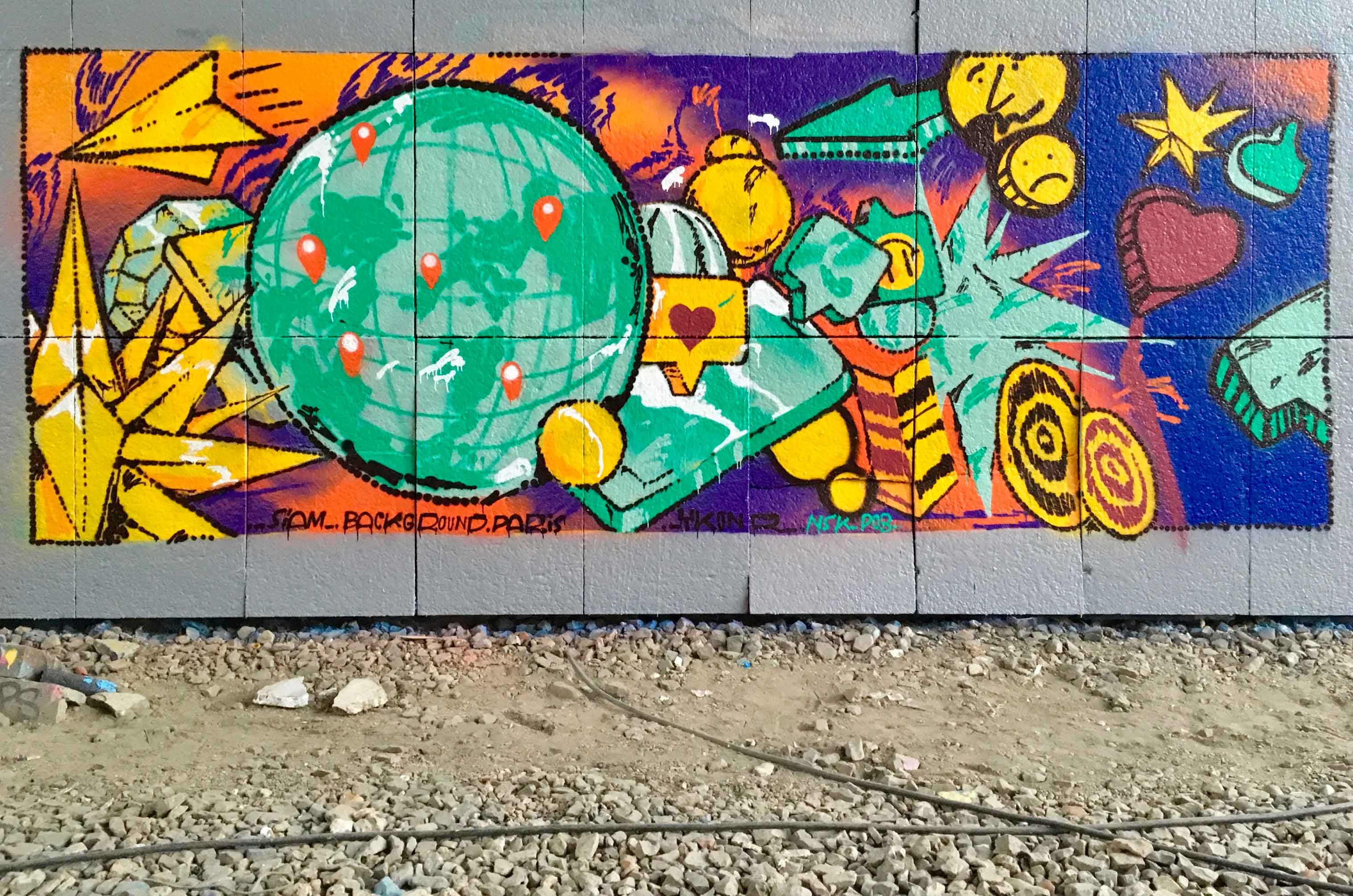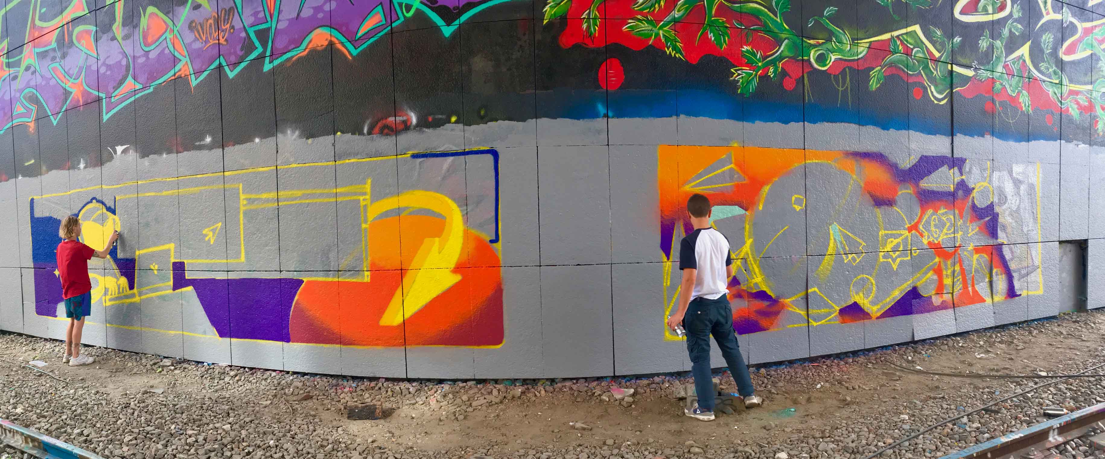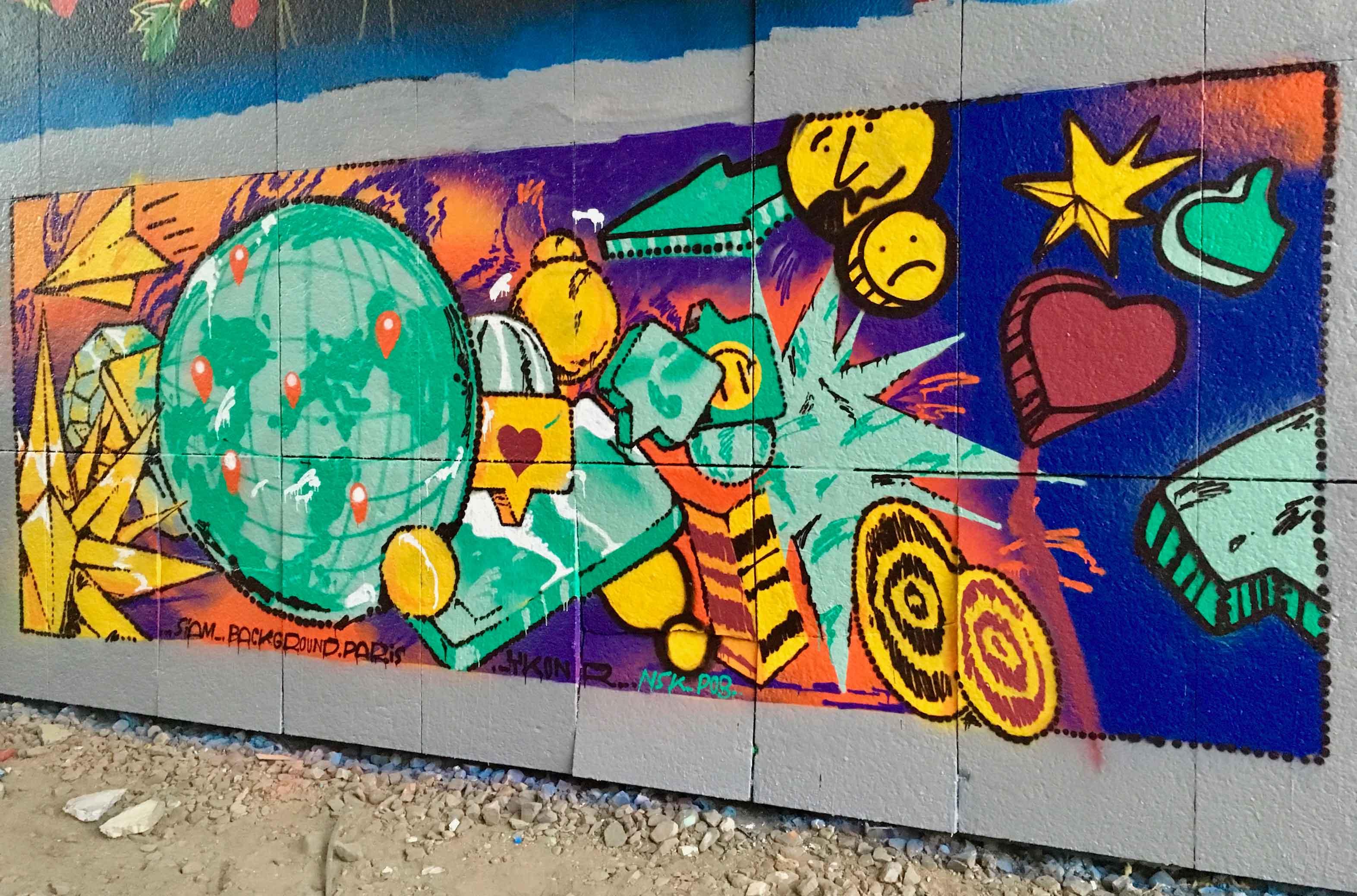 Une balade graffiti en intro avant de retrouver les artistes Ykon et Siam pour une peinture collaborative sur la thématique des réseaux sociaux !