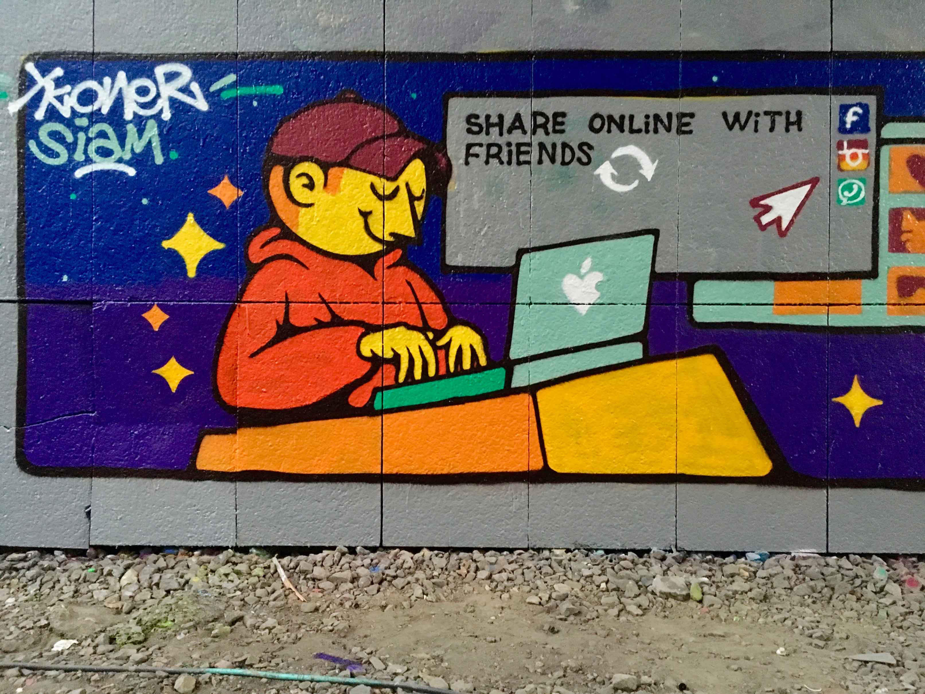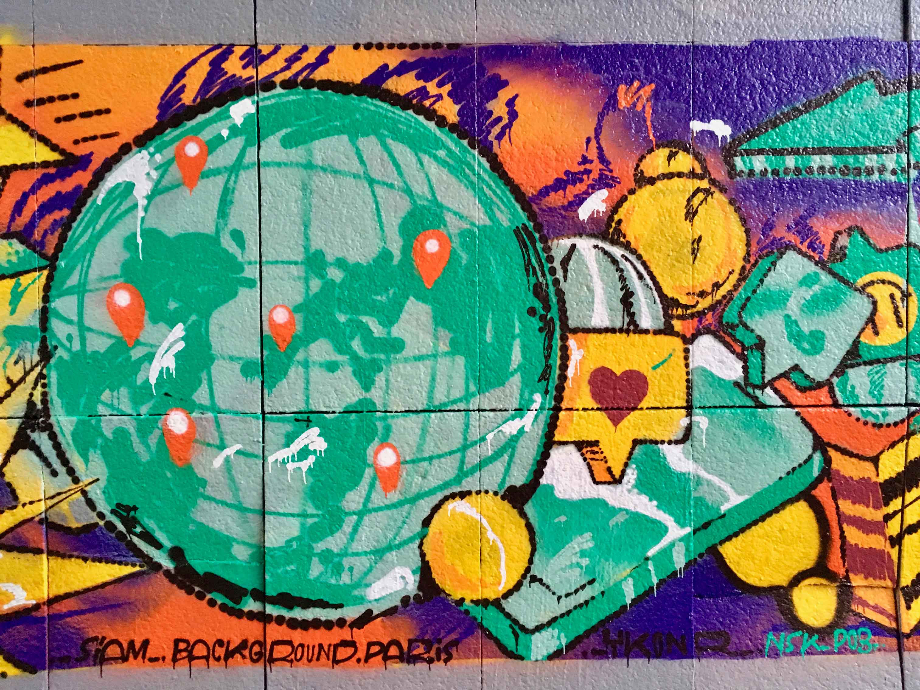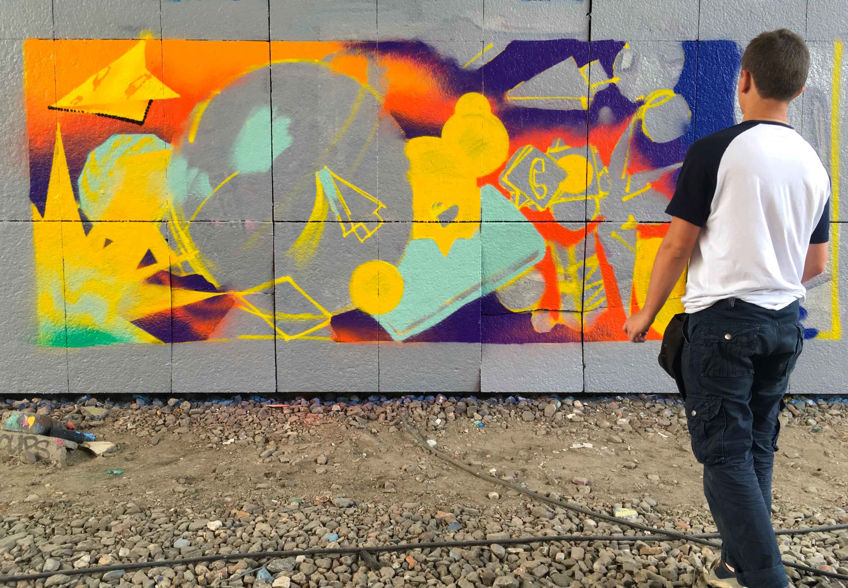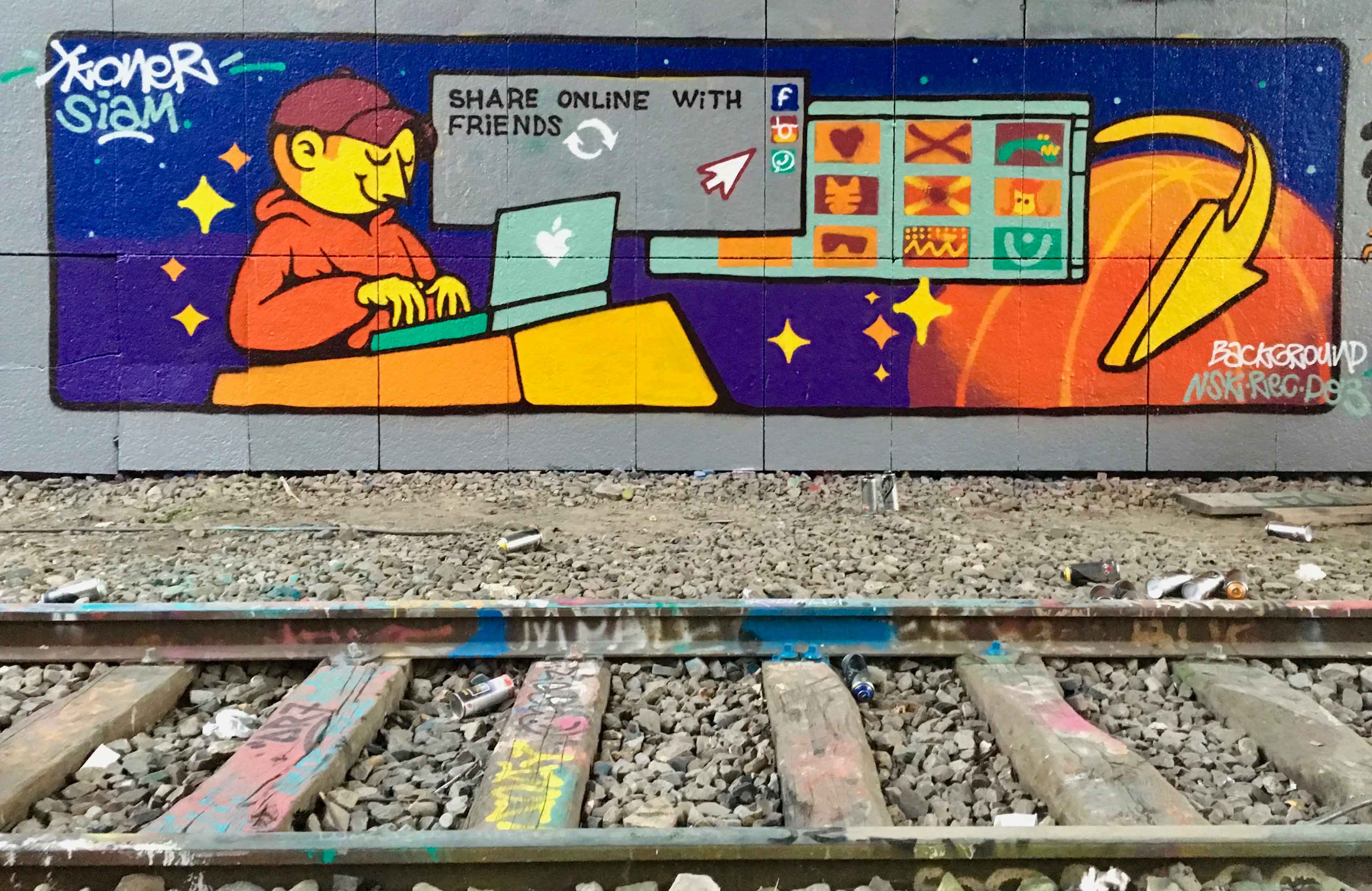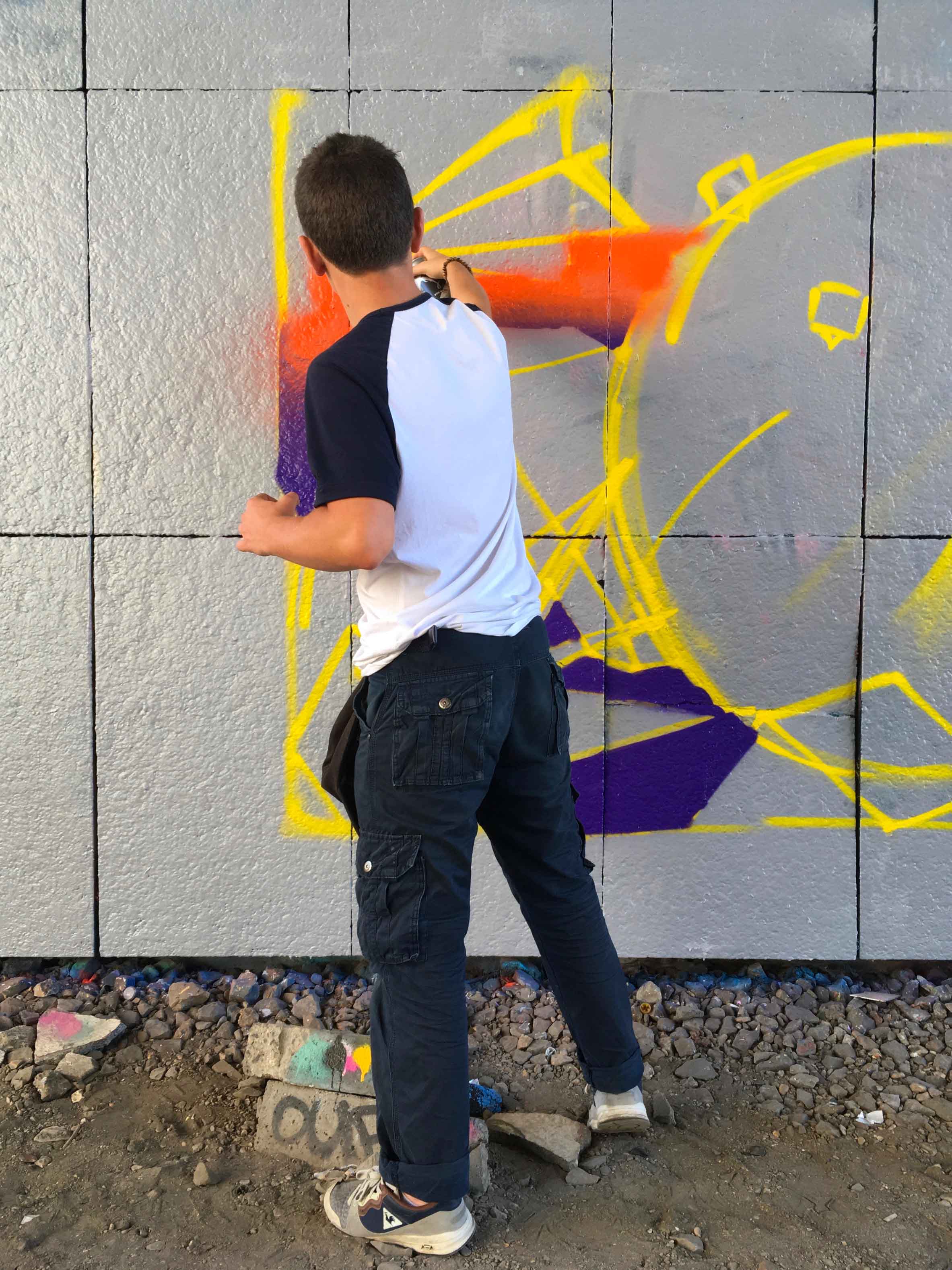 Une balade graffiti en intro avant de retrouver les artistes Ykon et Siam pour une peinture collaborative sur la thématique des réseaux sociaux !
