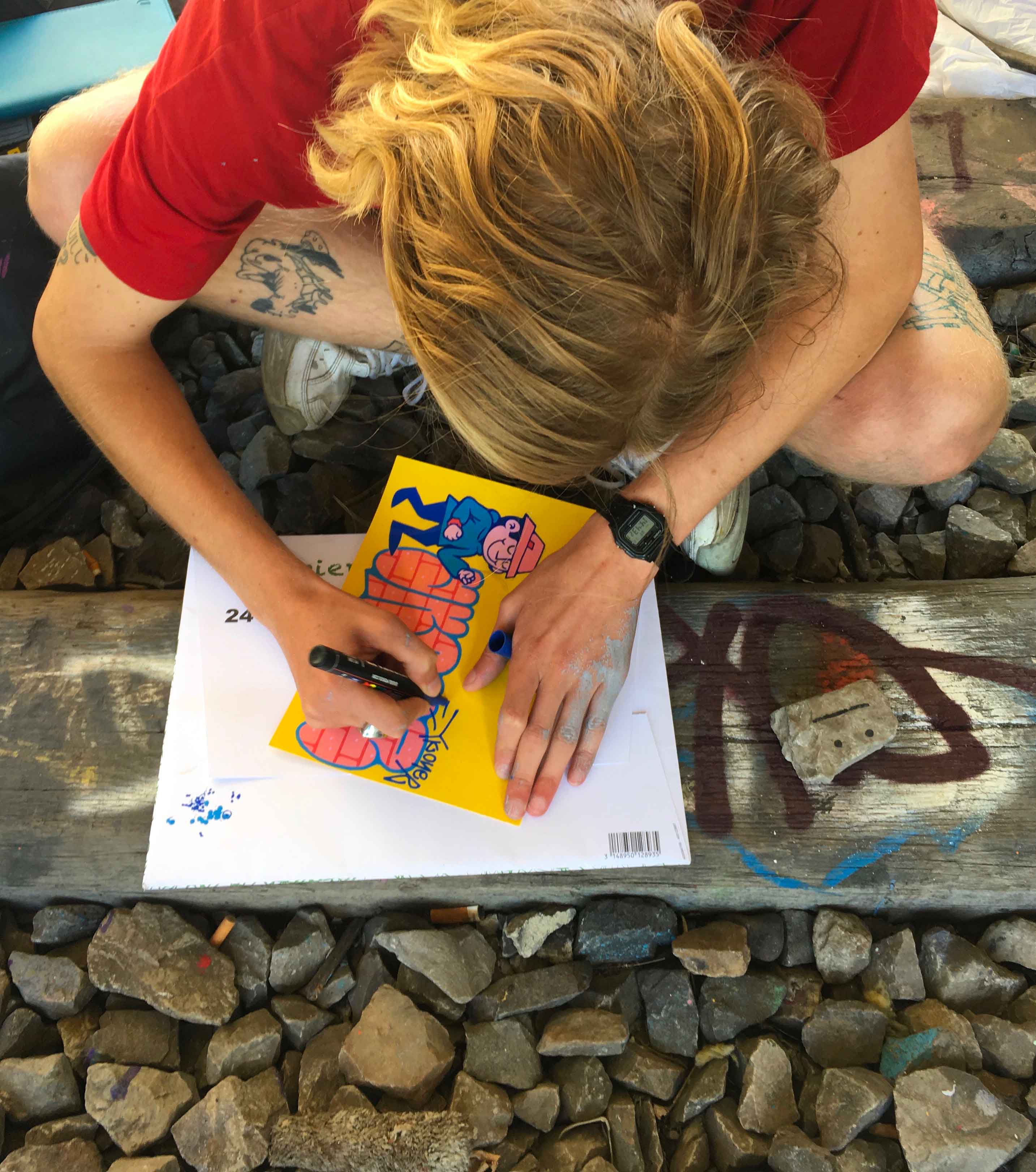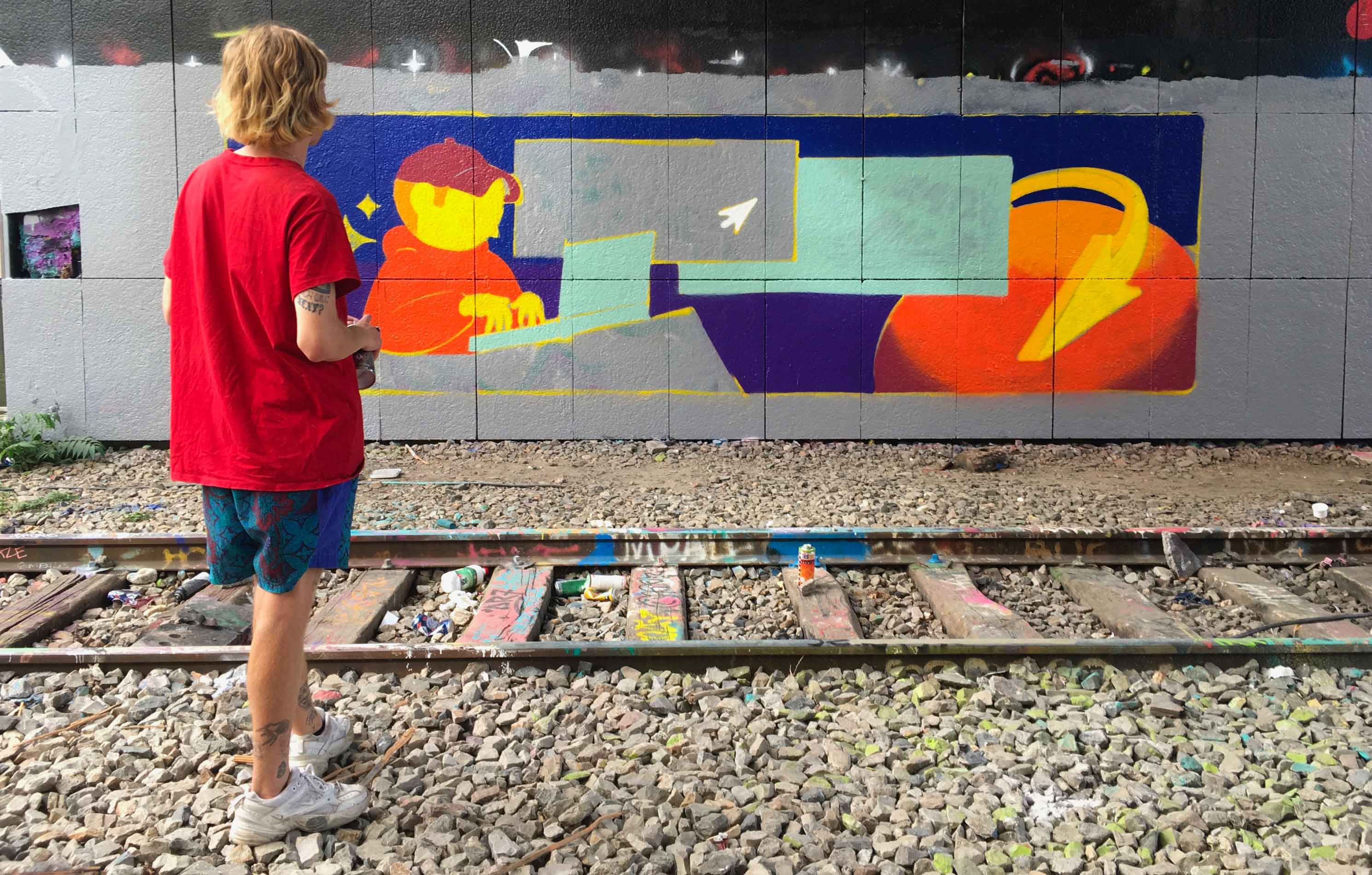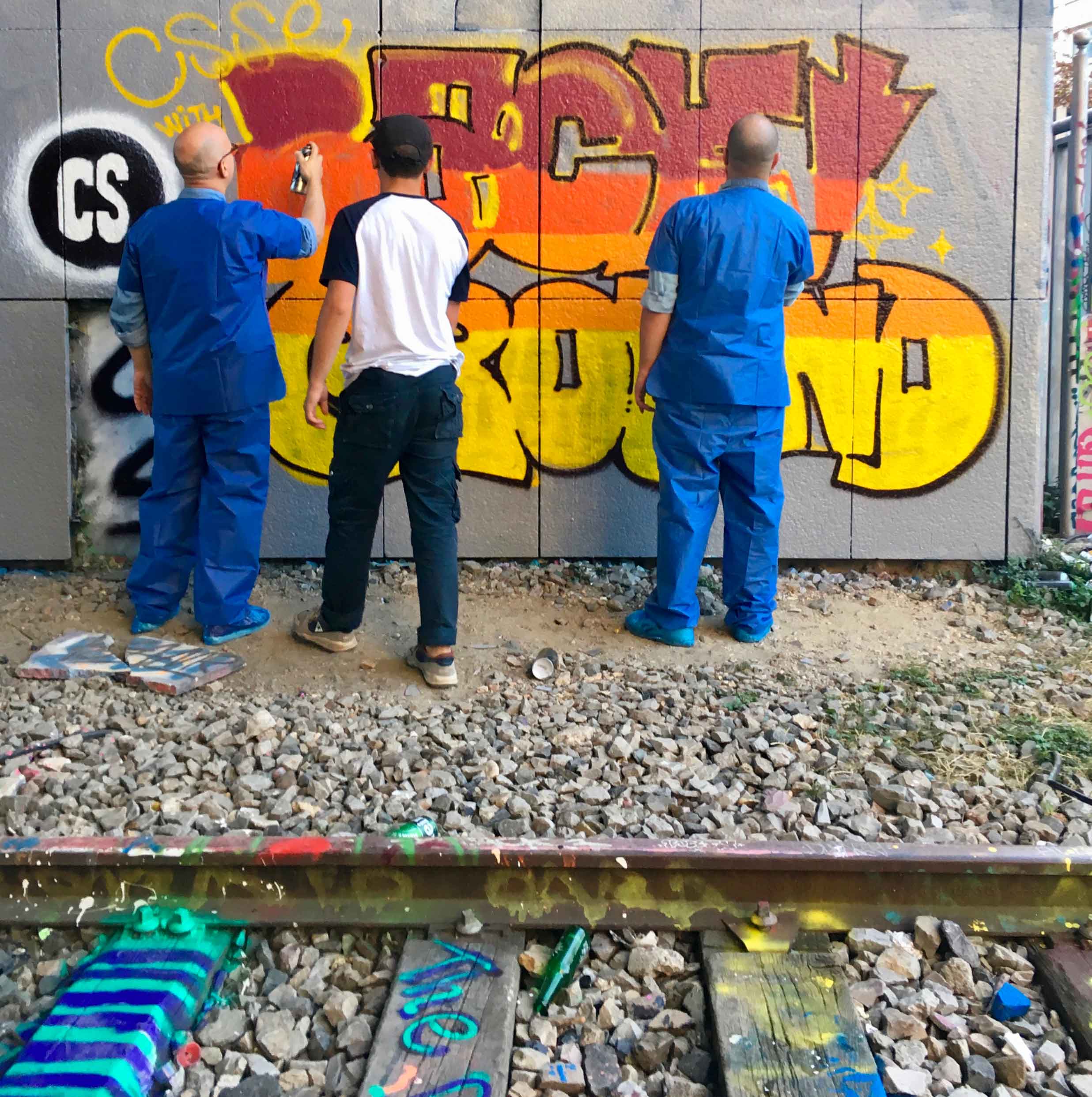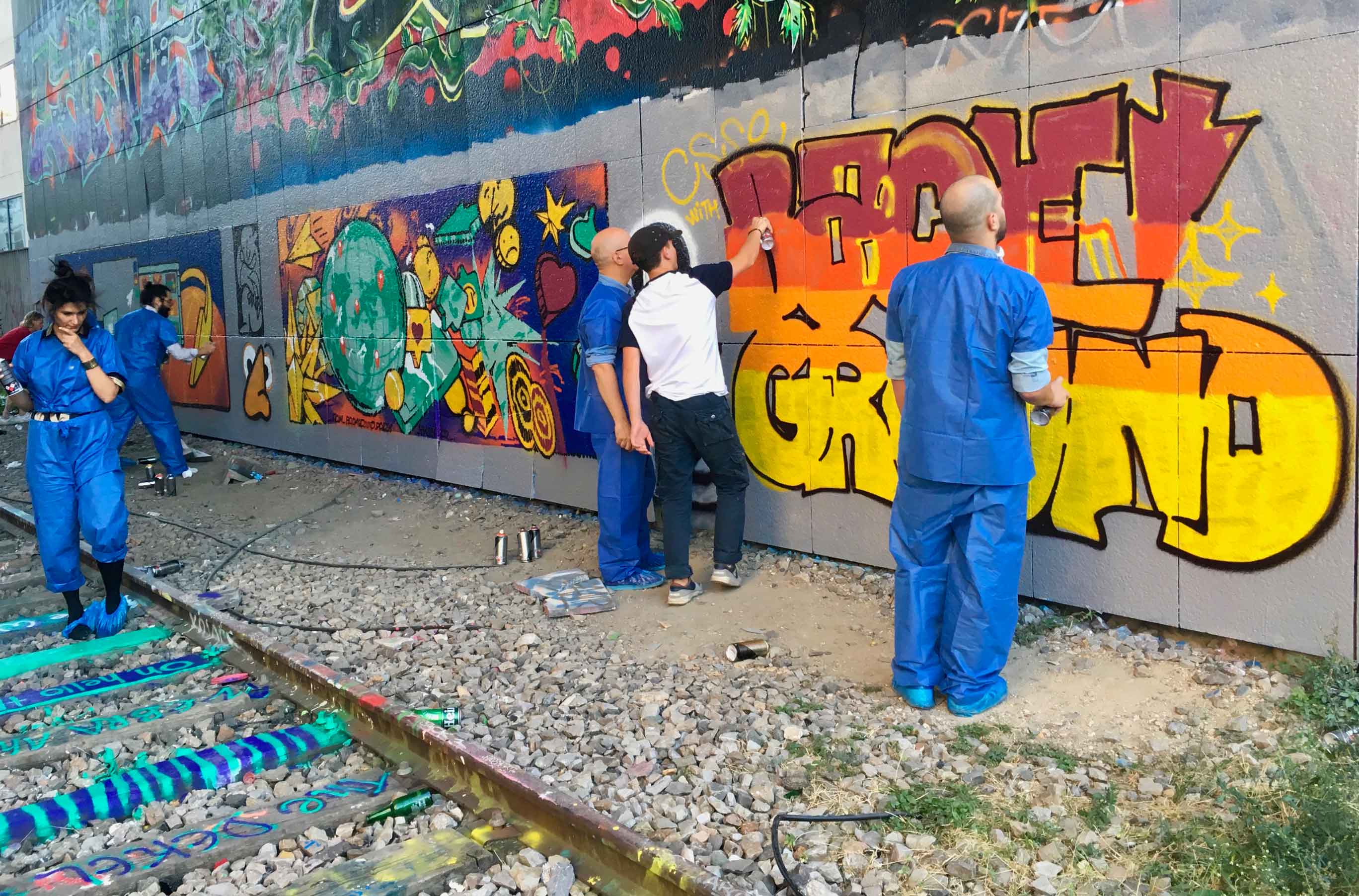 Une balade graffiti en intro avant de retrouver les artistes Ykon et Siam pour une peinture collaborative sur la thématique des réseaux sociaux !