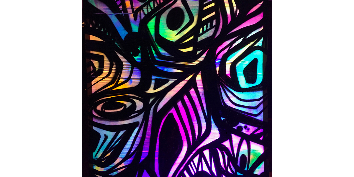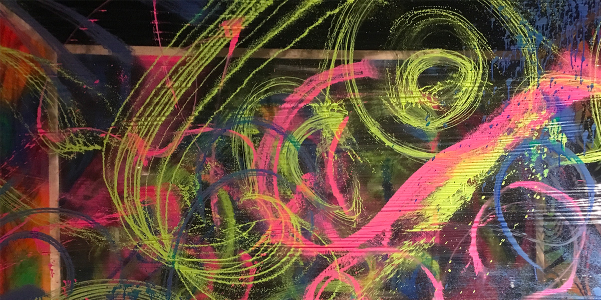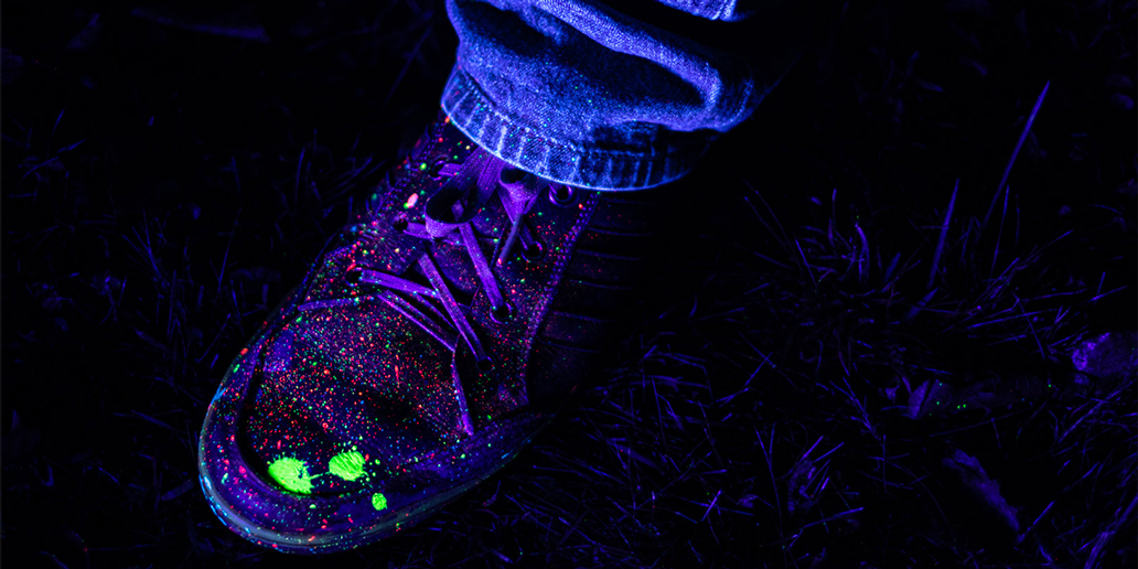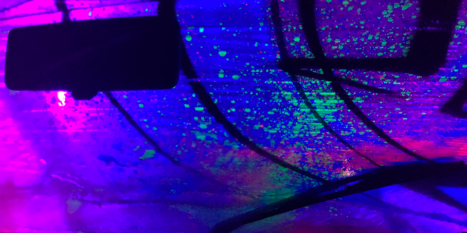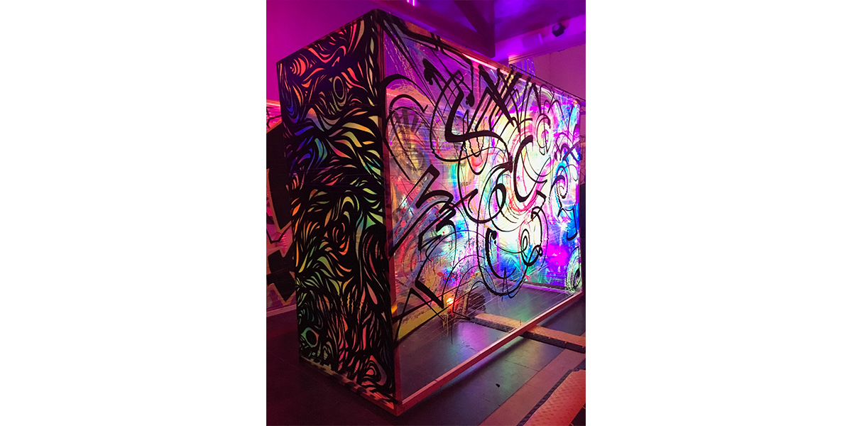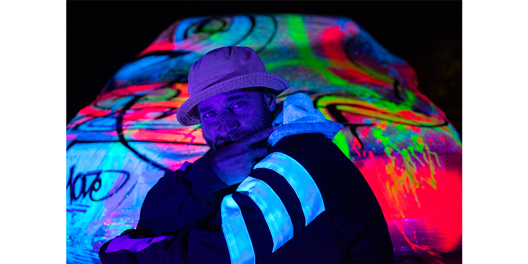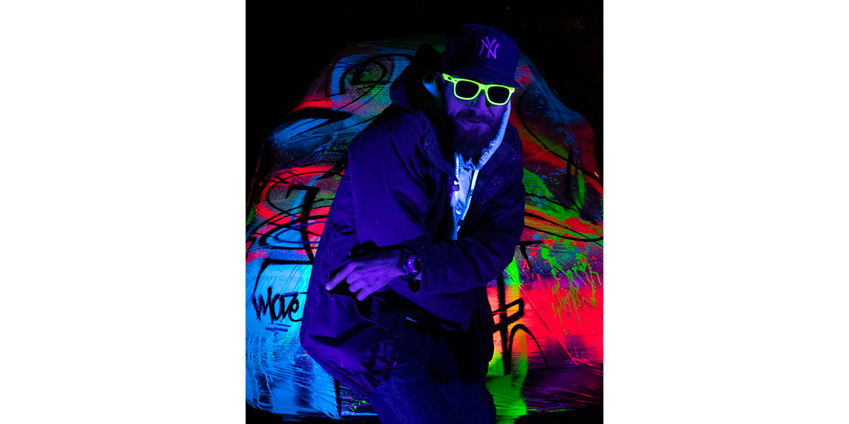 To play with the lighting effects and the dark night, the choice fell on the fluorescent paint revealed by UV light for a brilliant result.