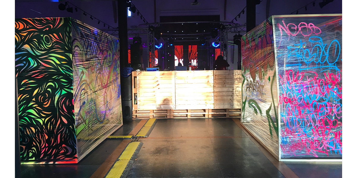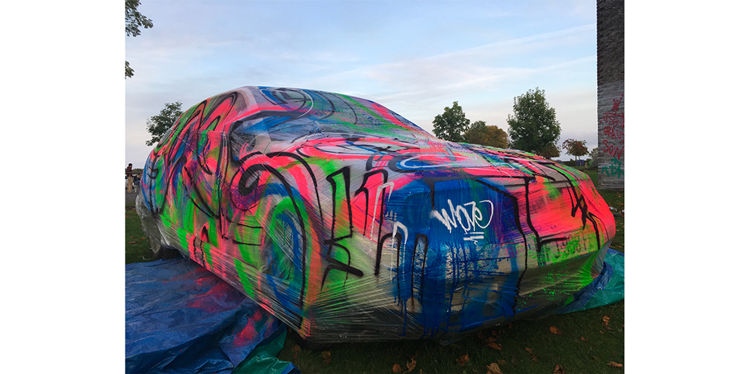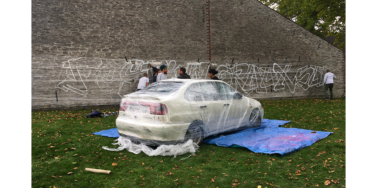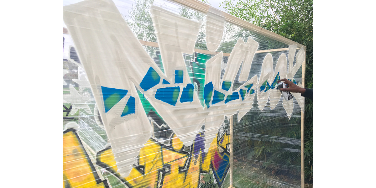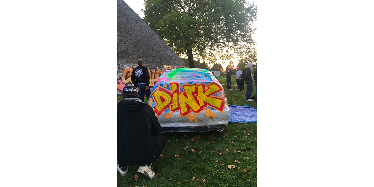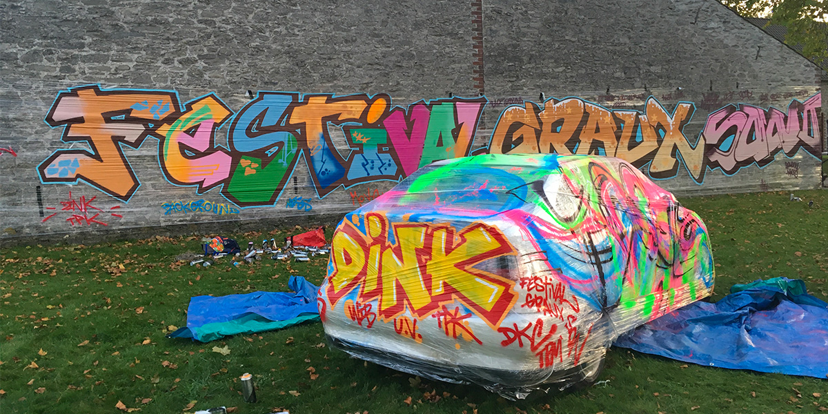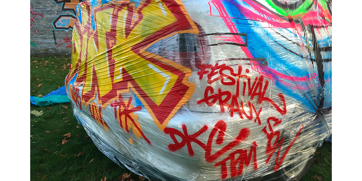On the program for this second edition with the artists Dink and Move: interior spaces with paintings on ten cellophane modules, graffiti workshop for 40 participants over 30 meters long, live painting on cellophane car, dedications to artists musicians in tags for scenic dressing…