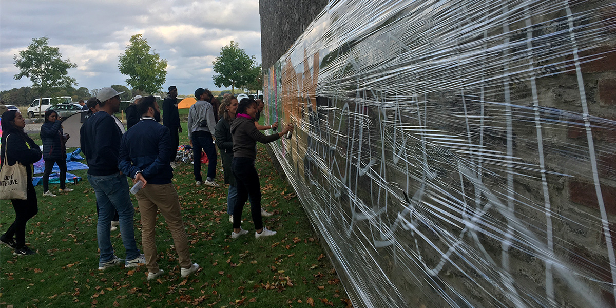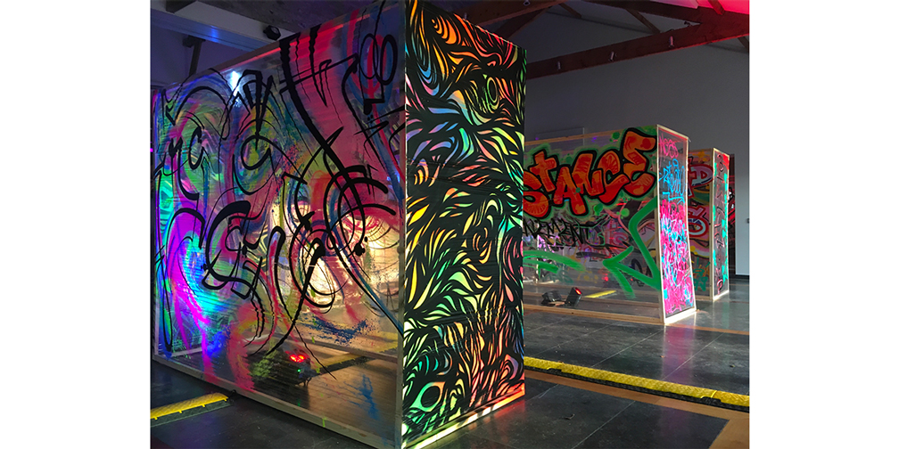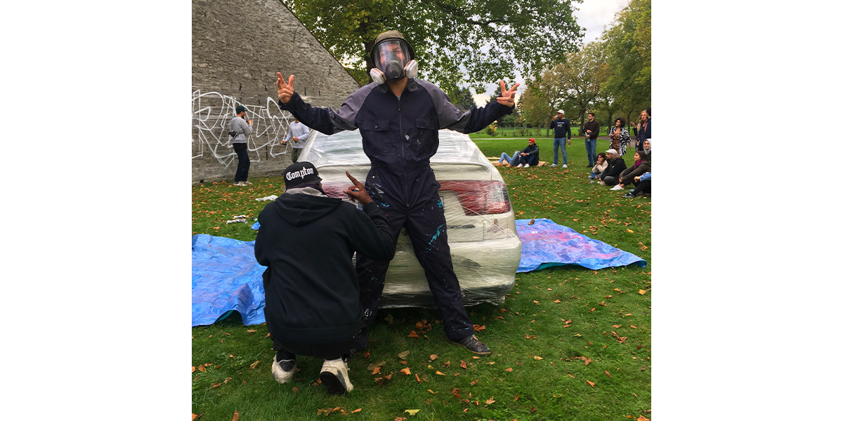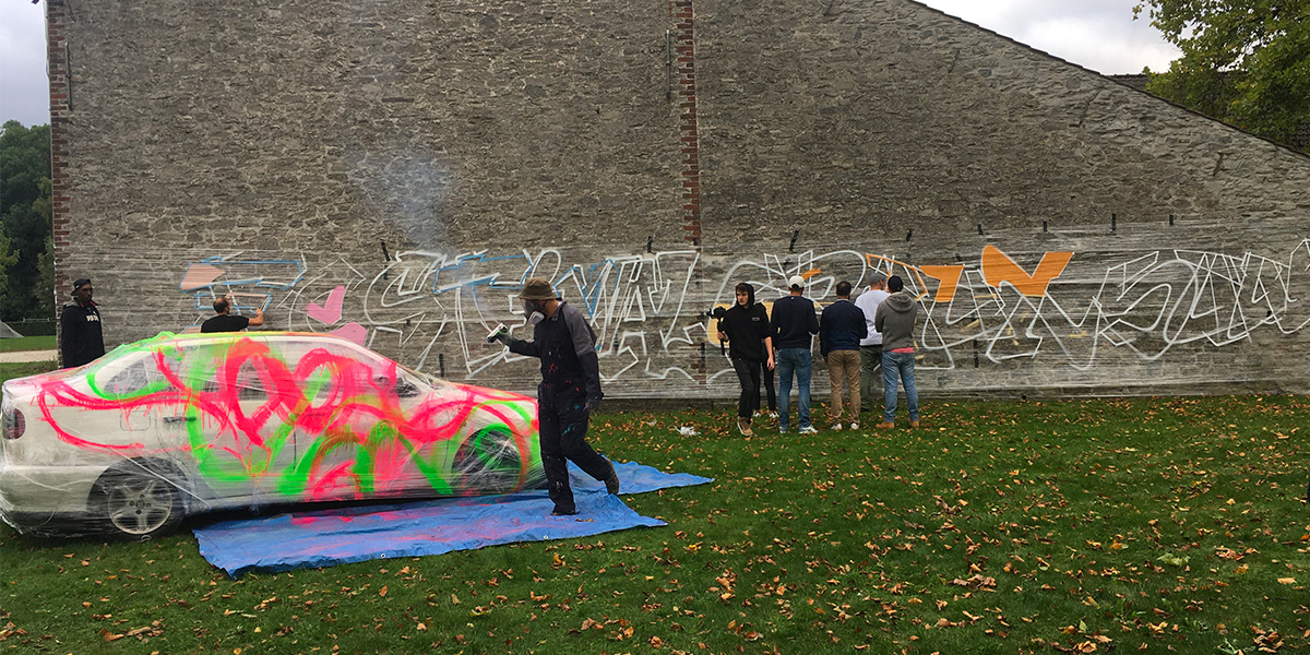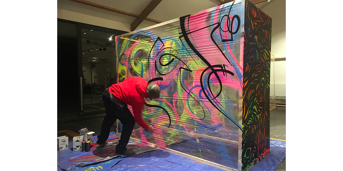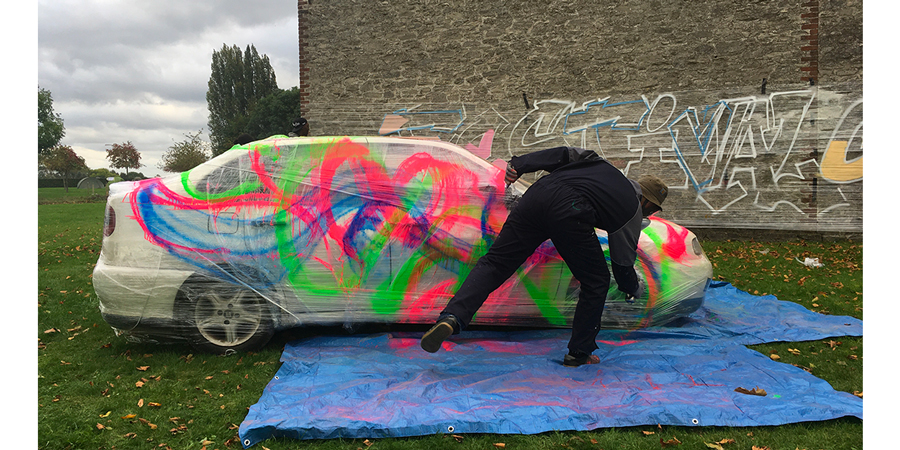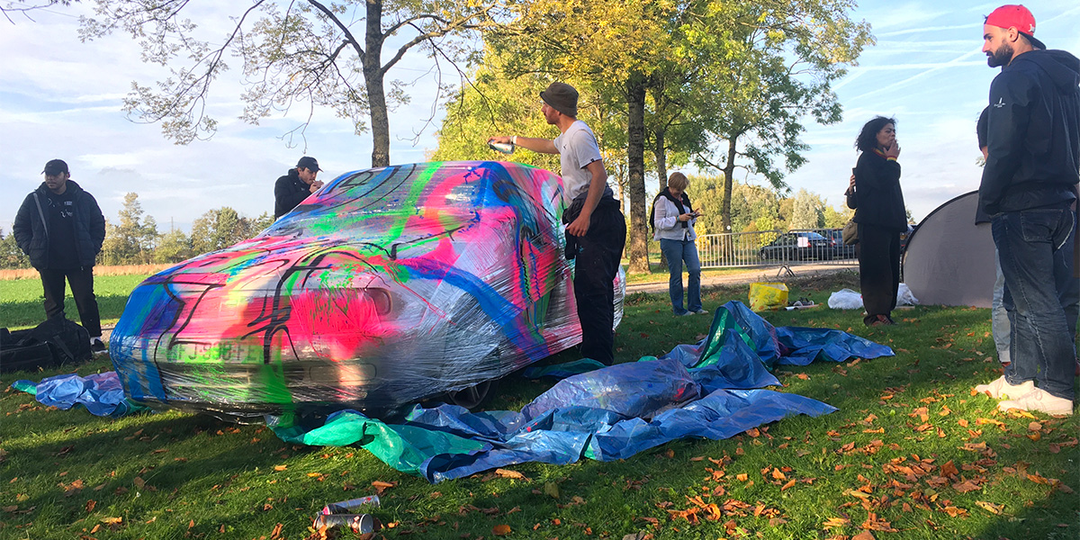 On the program for this second edition with the artists Dink and Move: interior spaces with paintings on ten cellophane modules, graffiti workshop for 40 participants over 30 meters long, live painting on cellophane car, dedications to artists musicians in tags for scenic dressing…