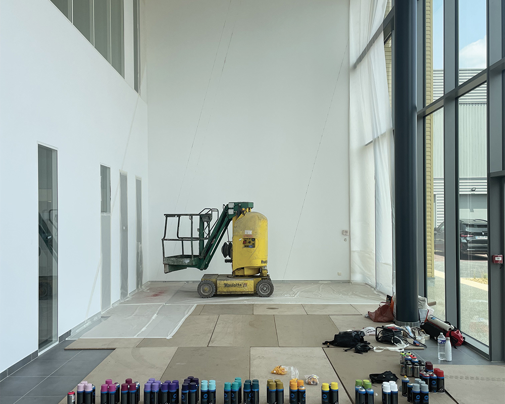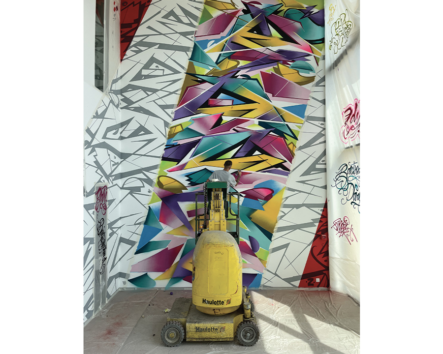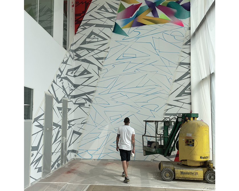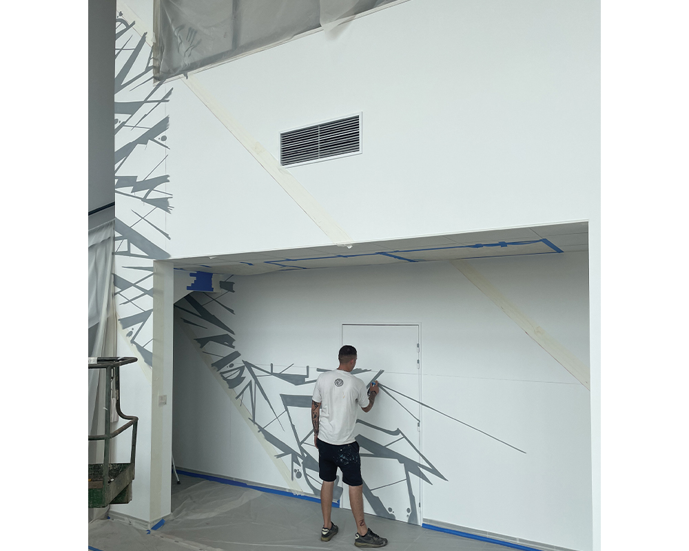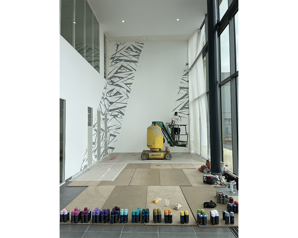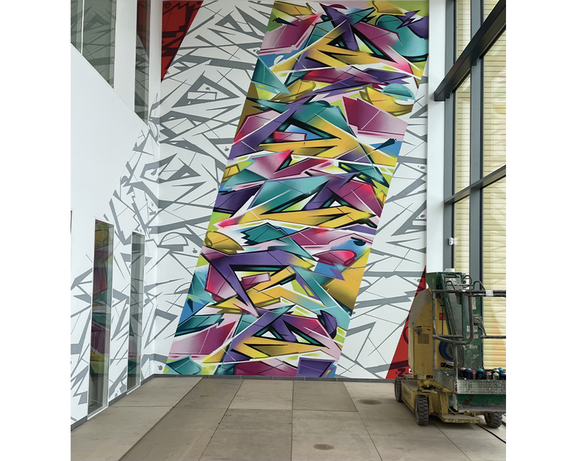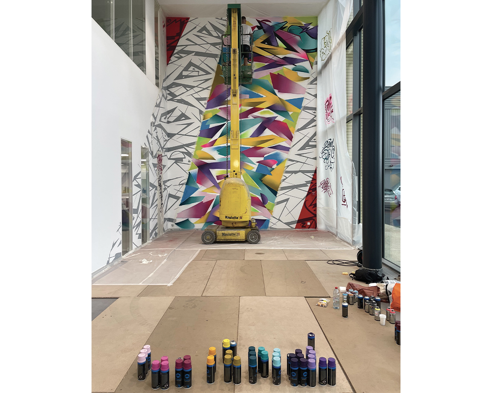 Un chantier XXL axé sur un travail abstrait, géométrique, coloré et dynamique pour une identité affirmée dans l'espace d'accueil.