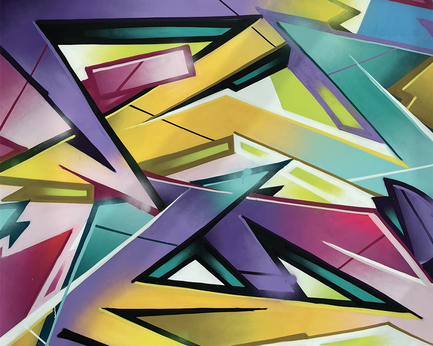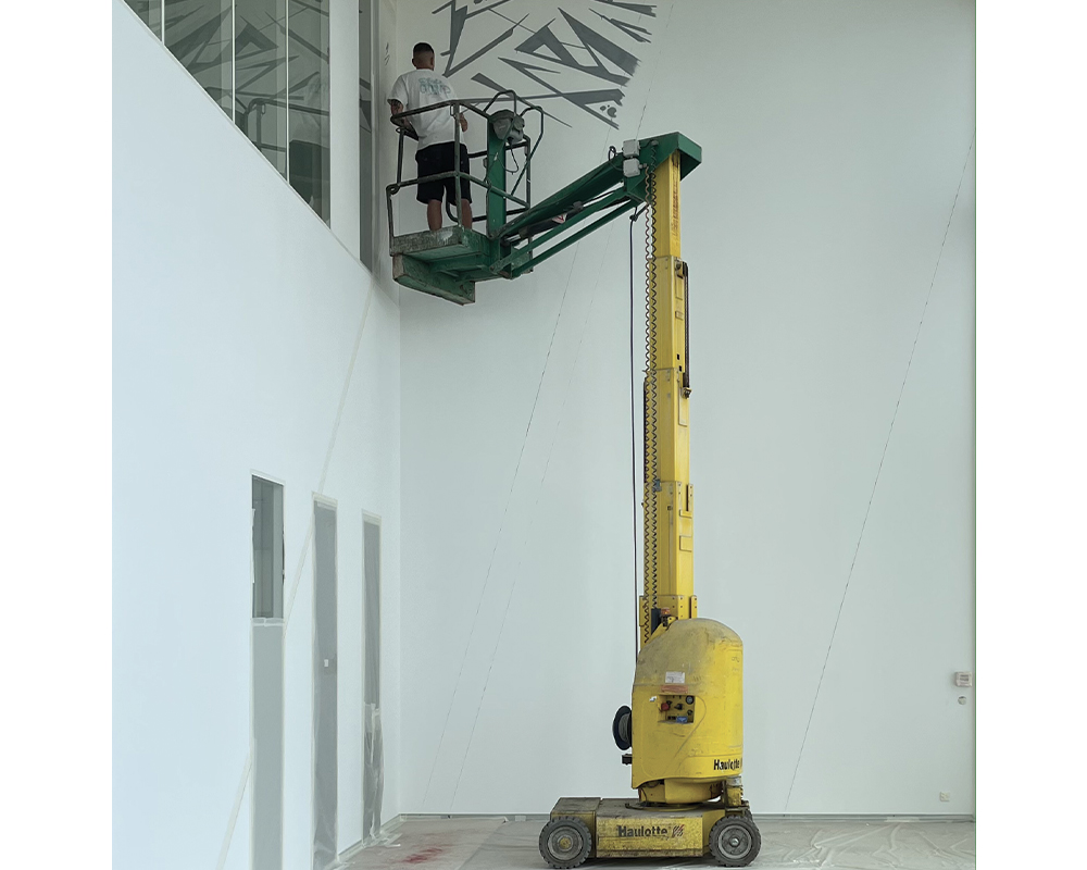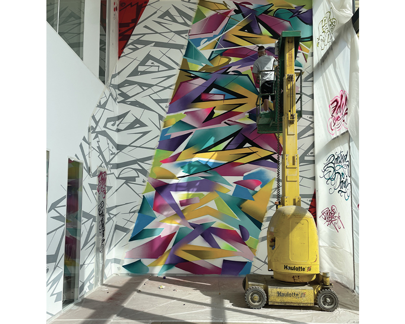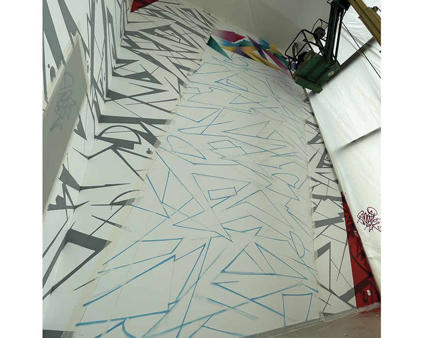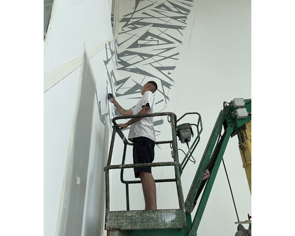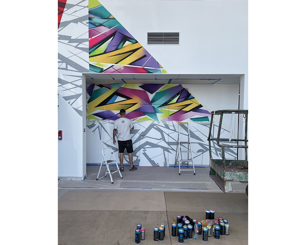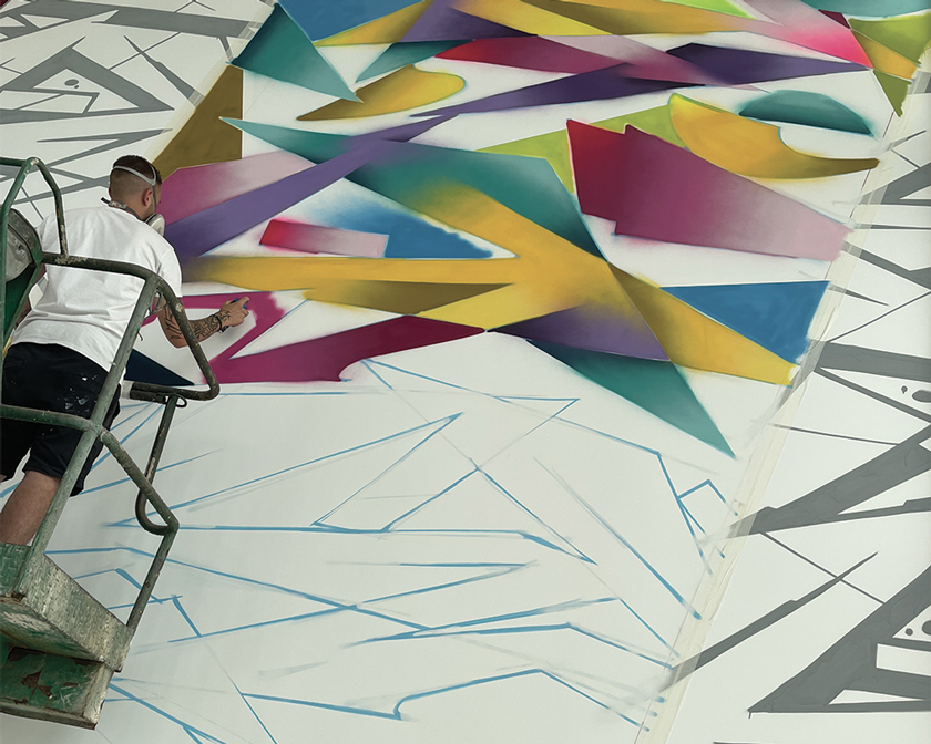Un chantier XXL axé sur un travail abstrait, géométrique, coloré et dynamique pour une identité affirmée dans l'espace d'accueil.