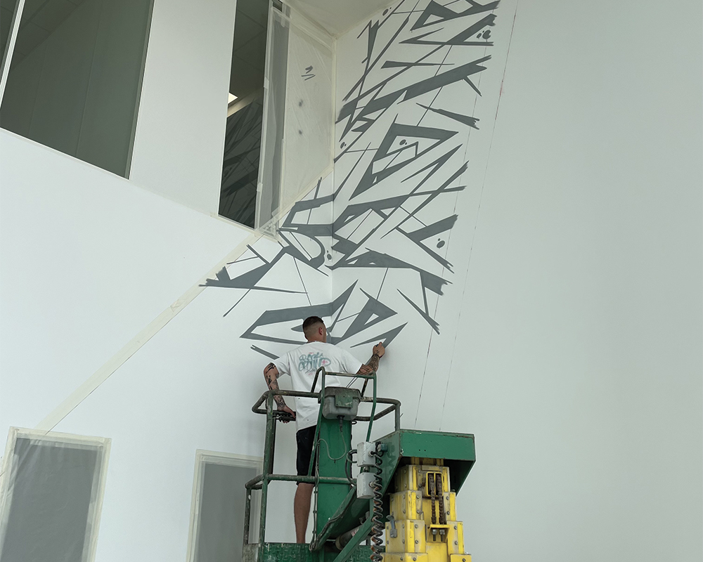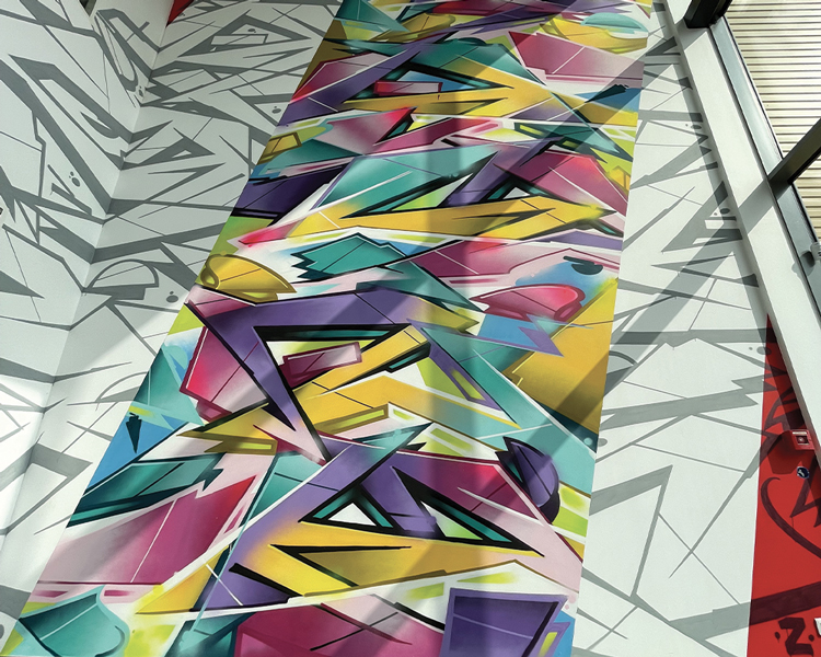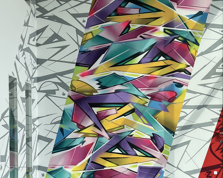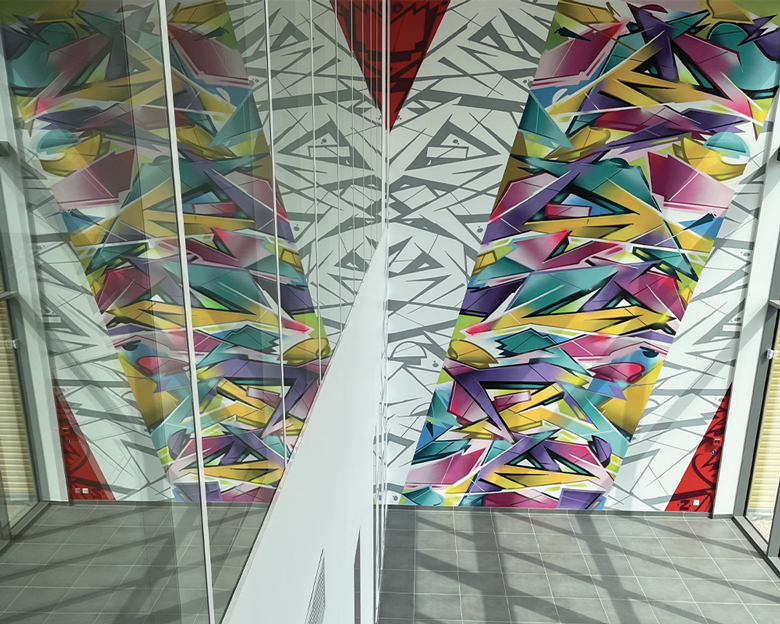 Retour en images sur notre projet d'habillage d'espaces pour l'entreprise GDV avec l'artiste Zoyer.
