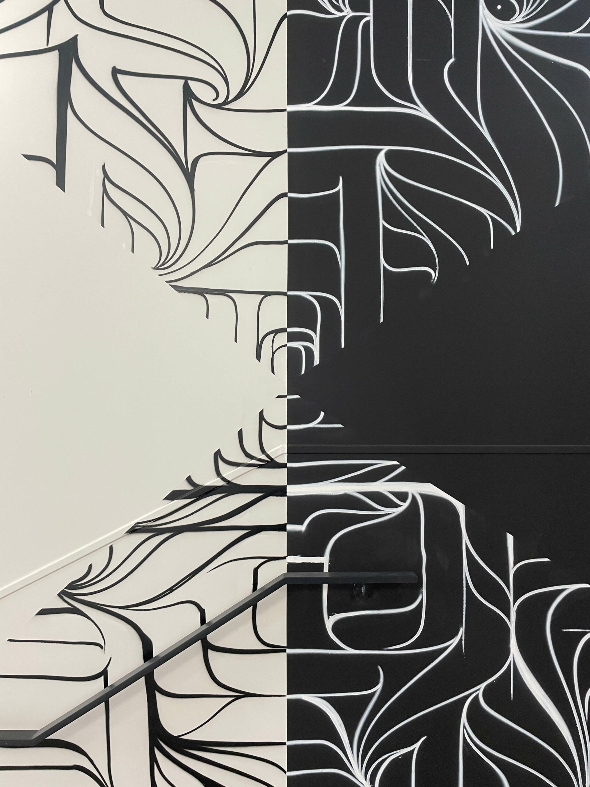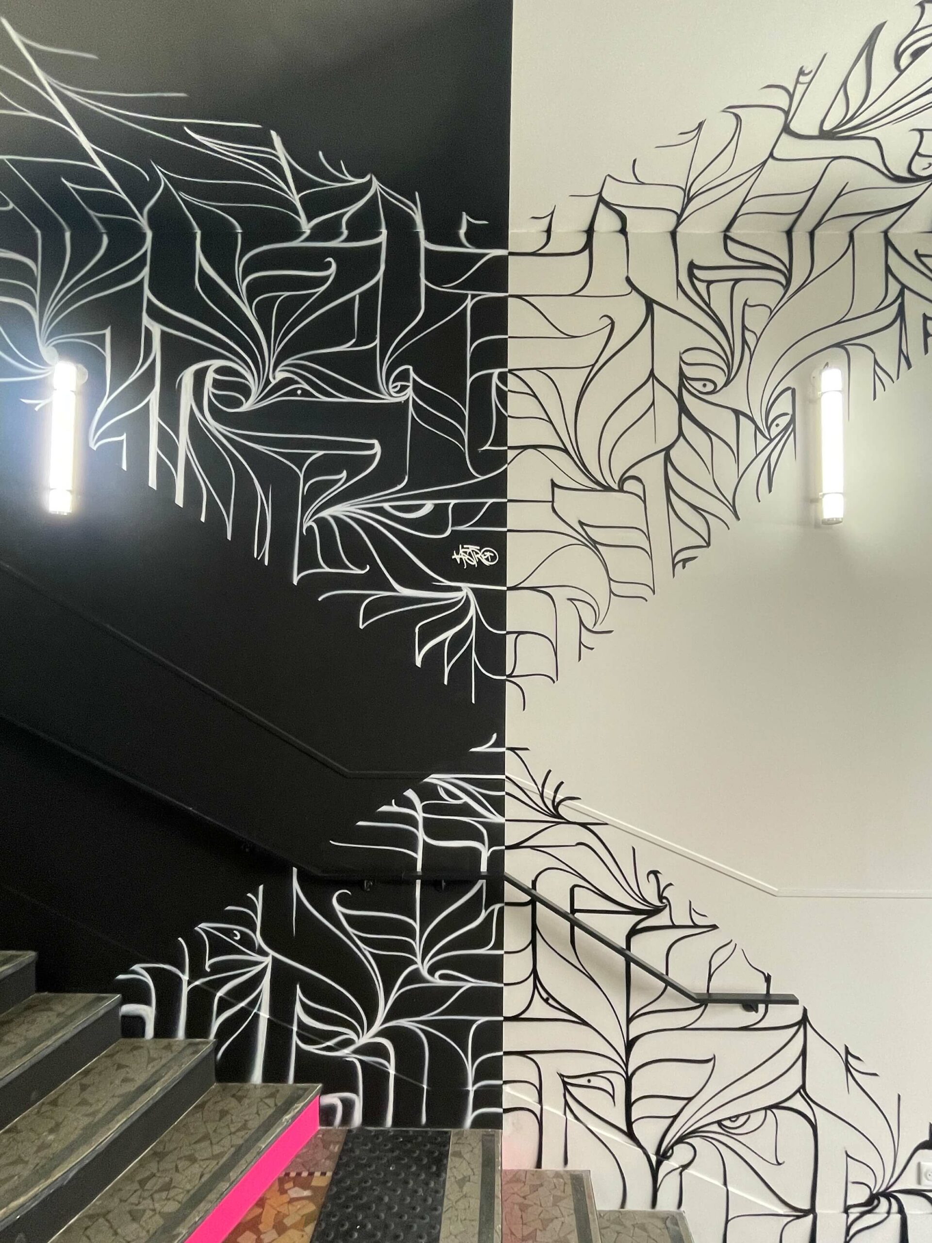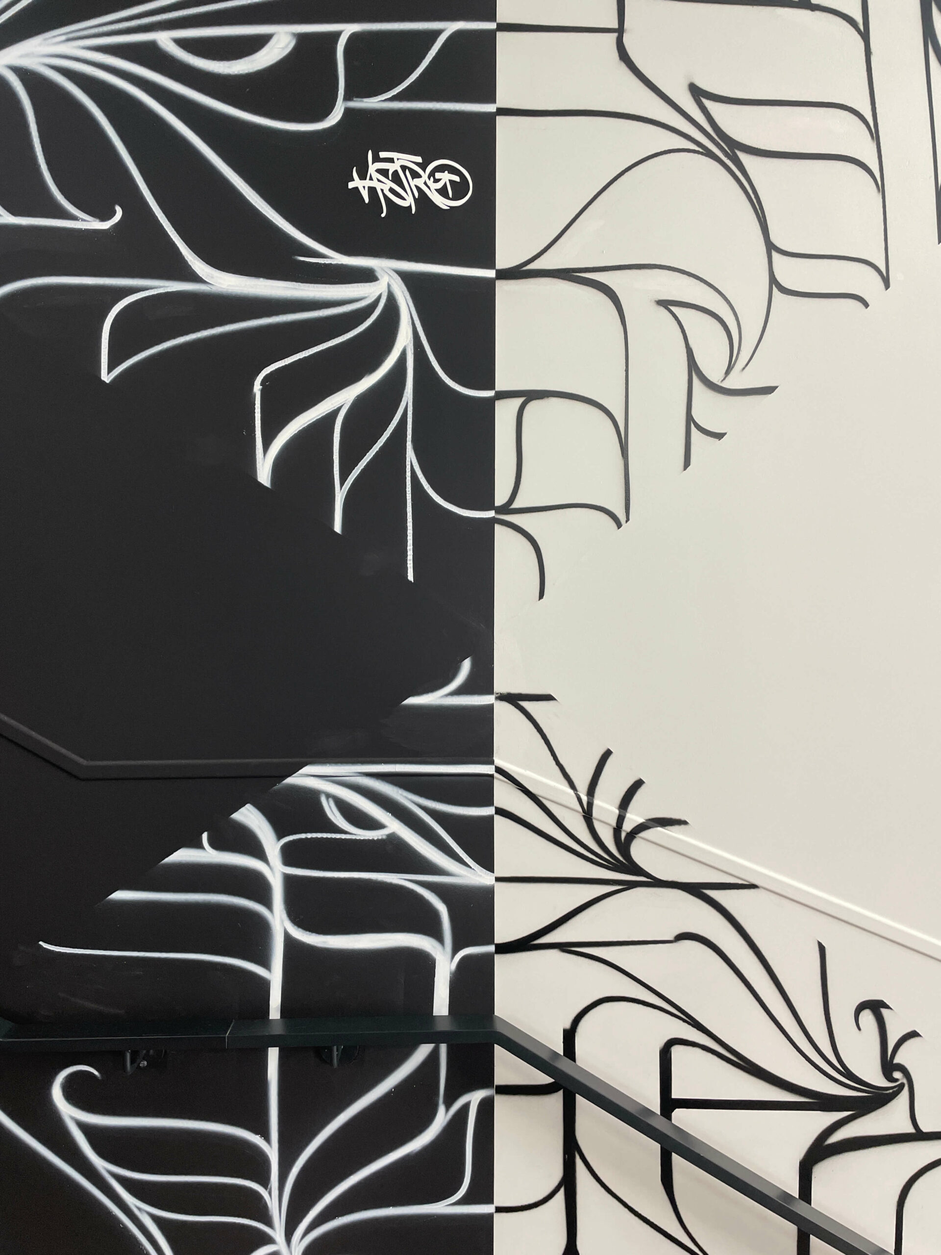 En collaboration avec l’artiste Astro qui déploie ici son univers calligraphique des murs au plafond, ce projet illustre notre engagement : créer des expériences artistiques durables au service des marques, des lieux et des communautés.