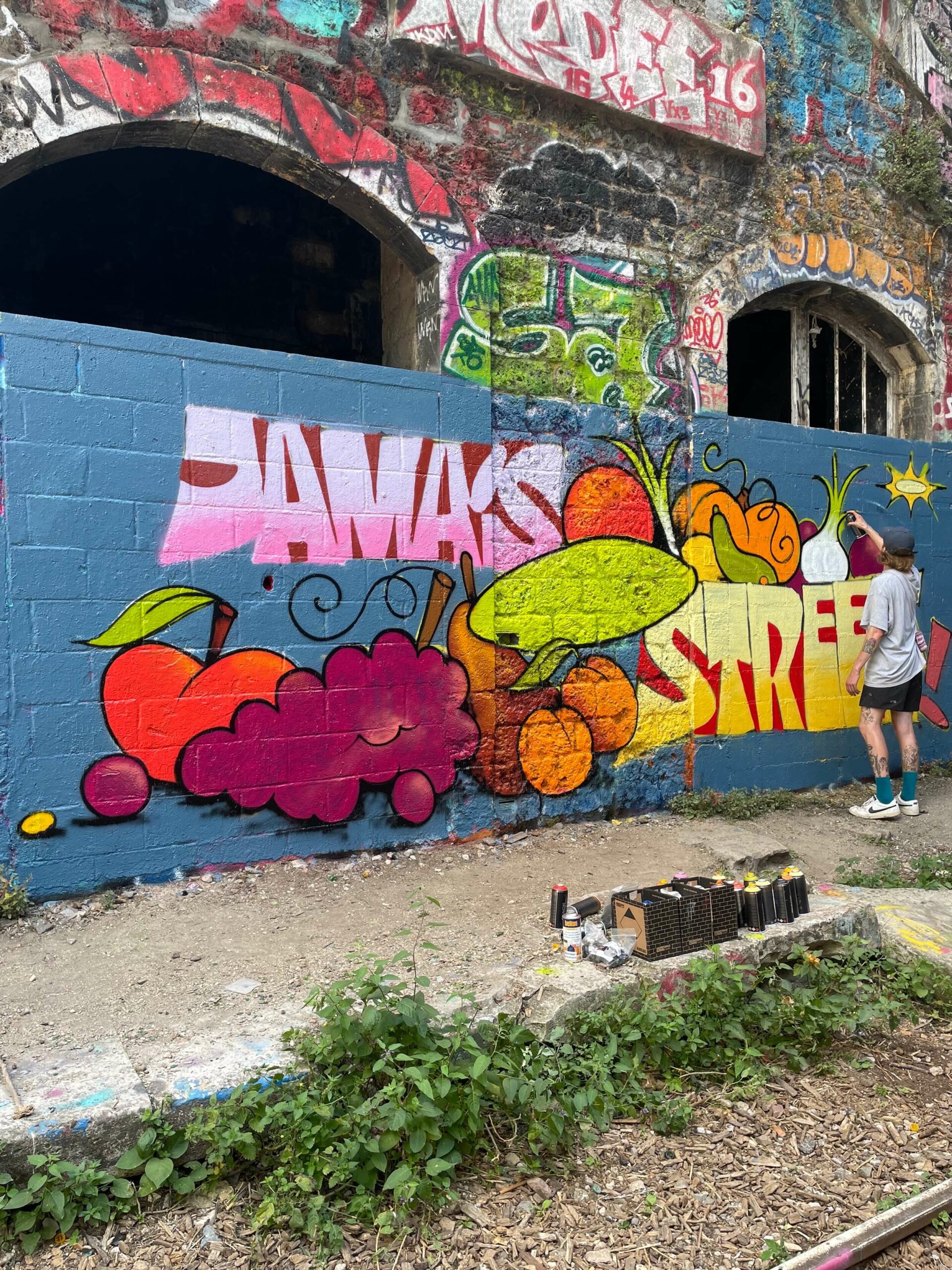 Pour promouvoir la consommation des fruits et légumes, Interfel nous a fait confiance pour un atelier team building street art destiné à une équipe d'influenceurs. Au programme : réalisation d'une fresque murale collaborative et dégustation de fruits et légumes préparés in situ.