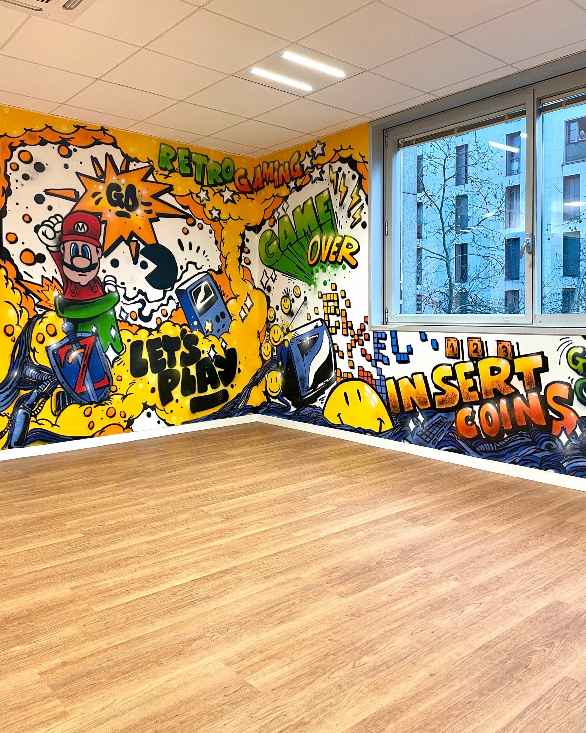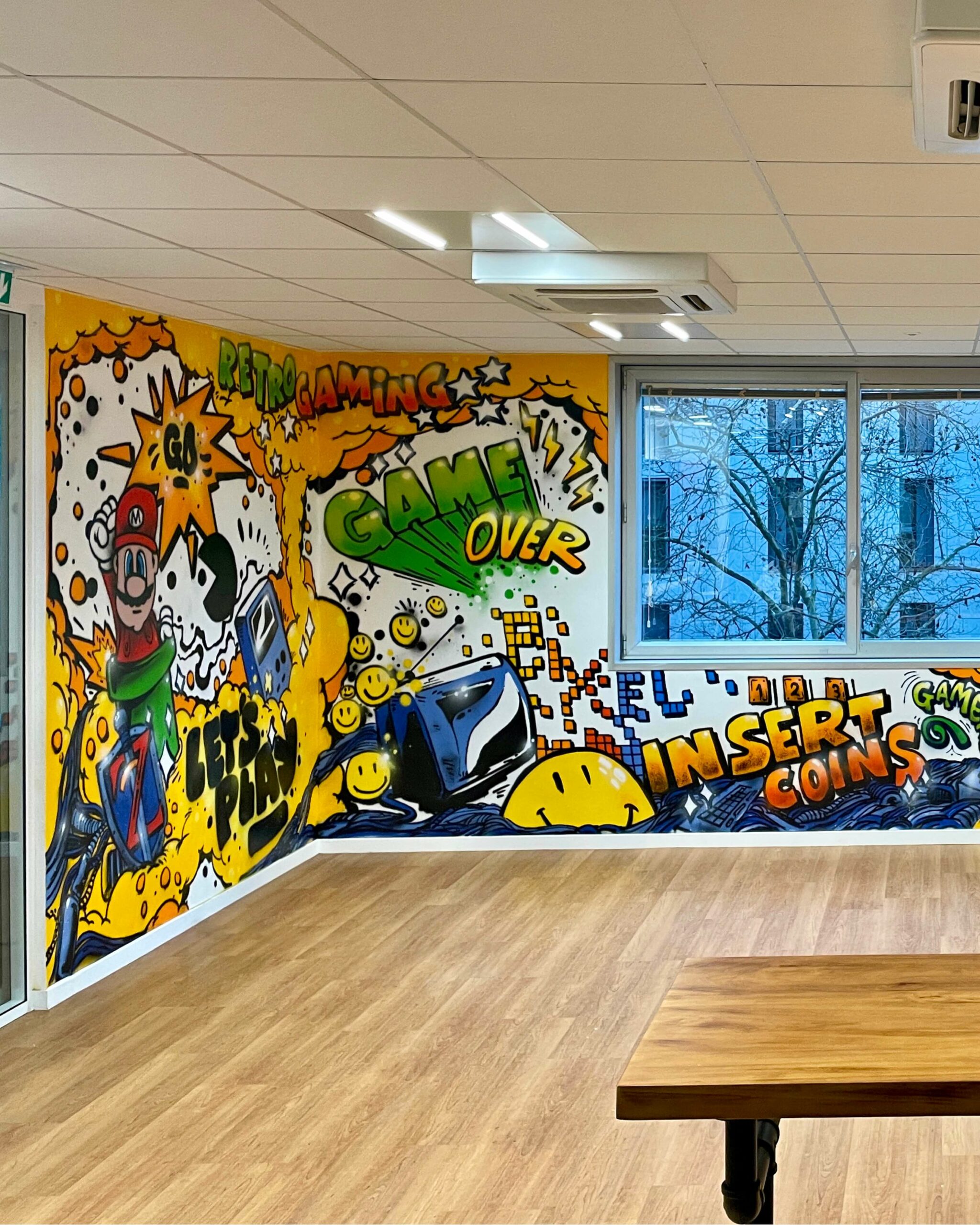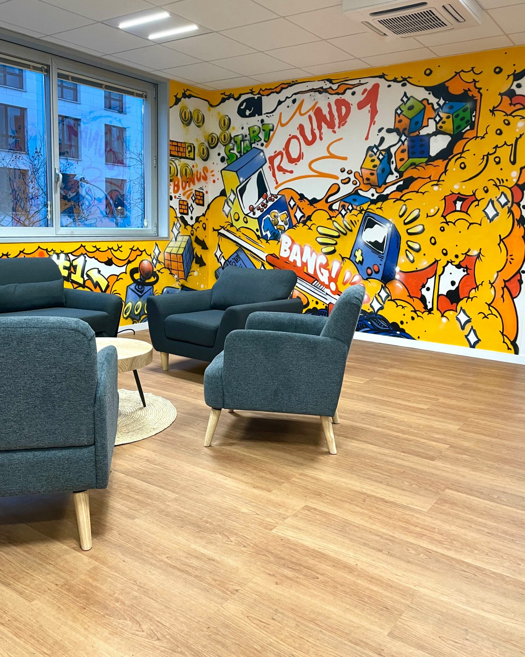 Notre mission : habiller les murs du nouvel espace dĂ©tente et gaming de l’entreprise 🎼