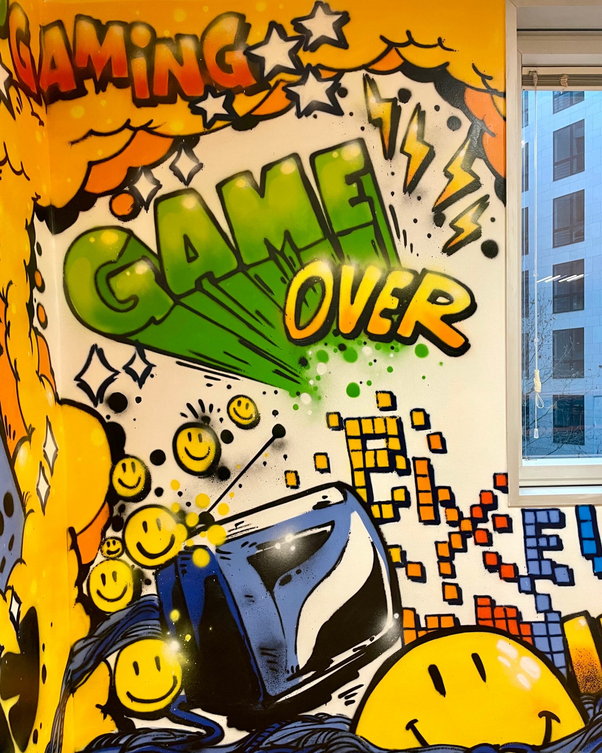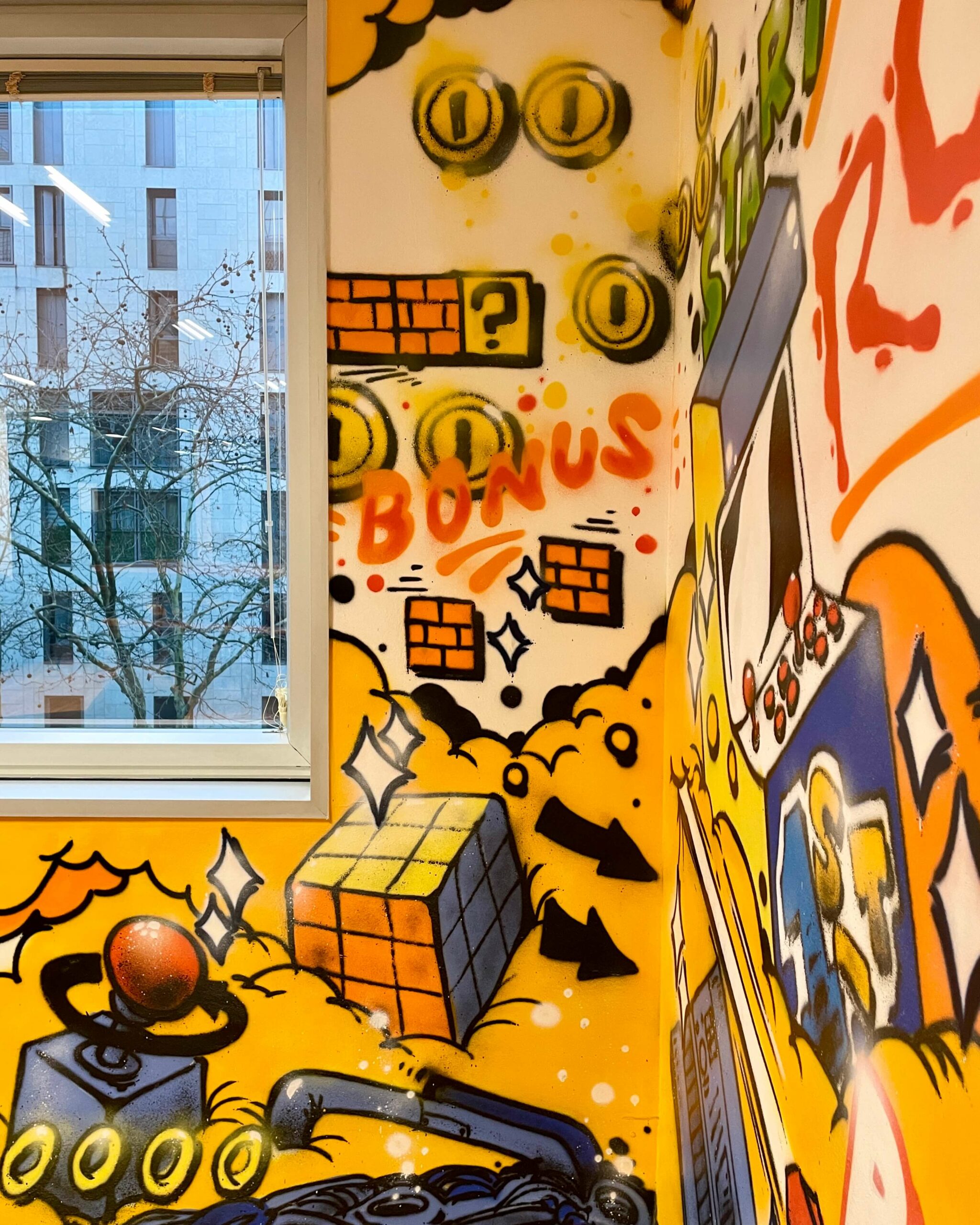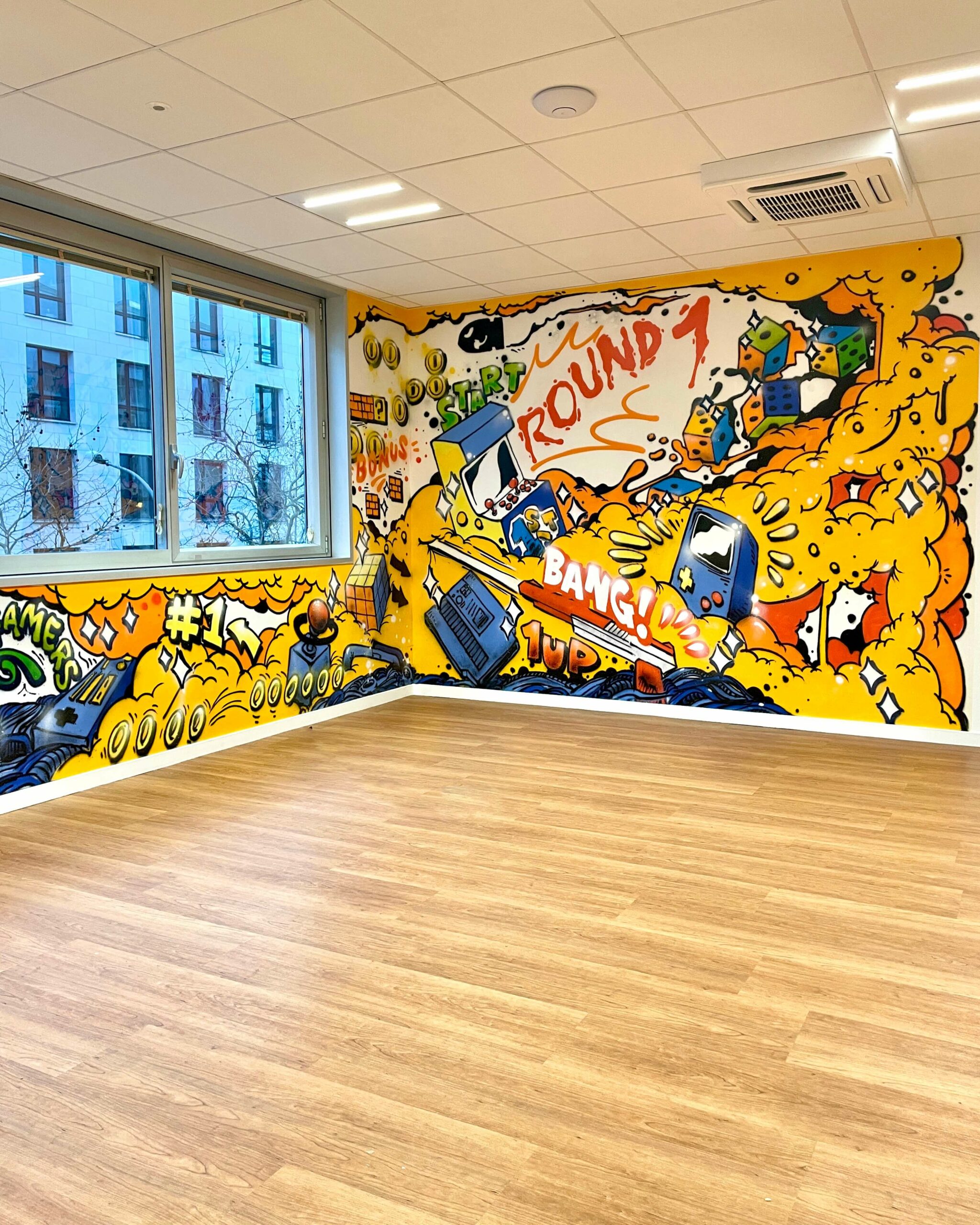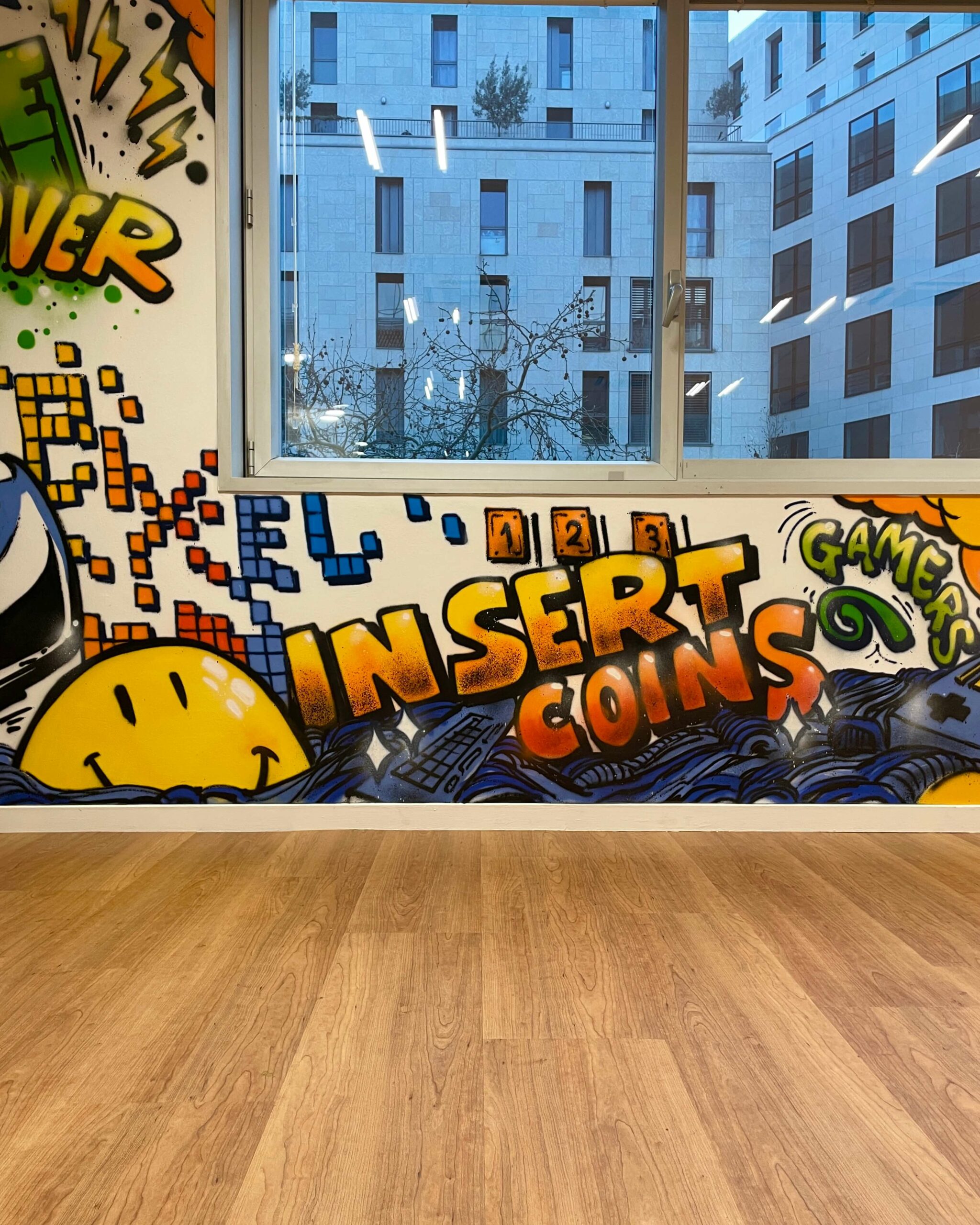 Notre mission : habiller les murs du nouvel espace dĂ©tente et gaming de l’entreprise 🎼