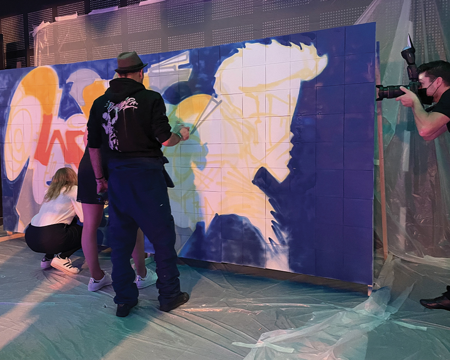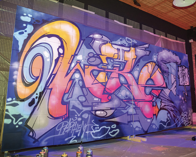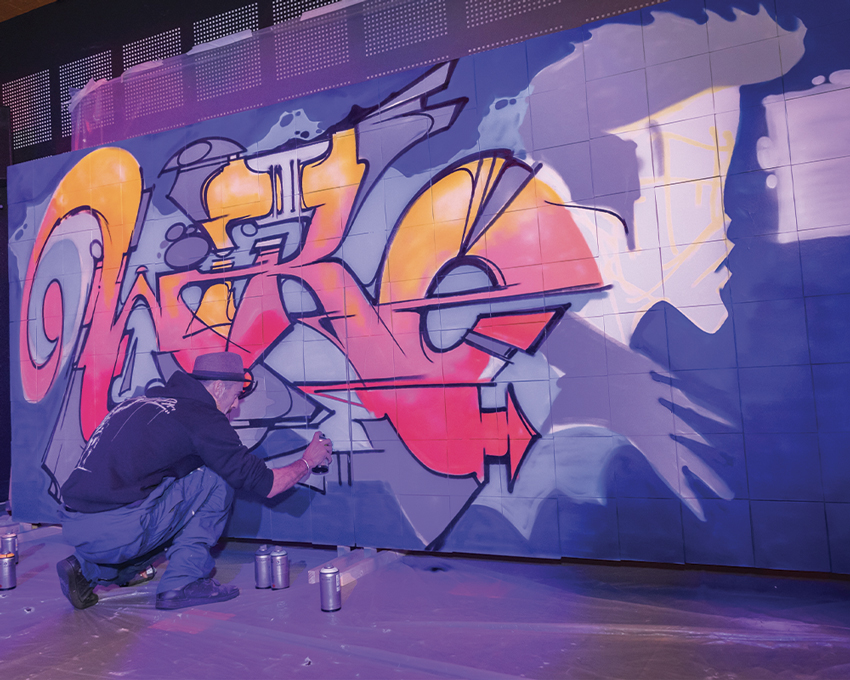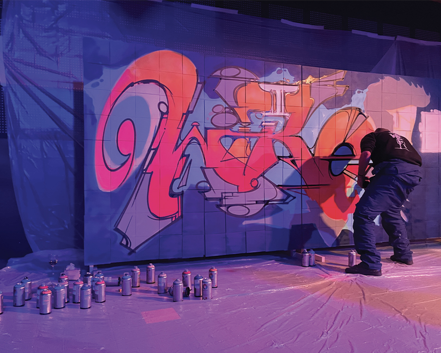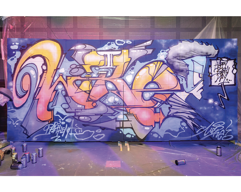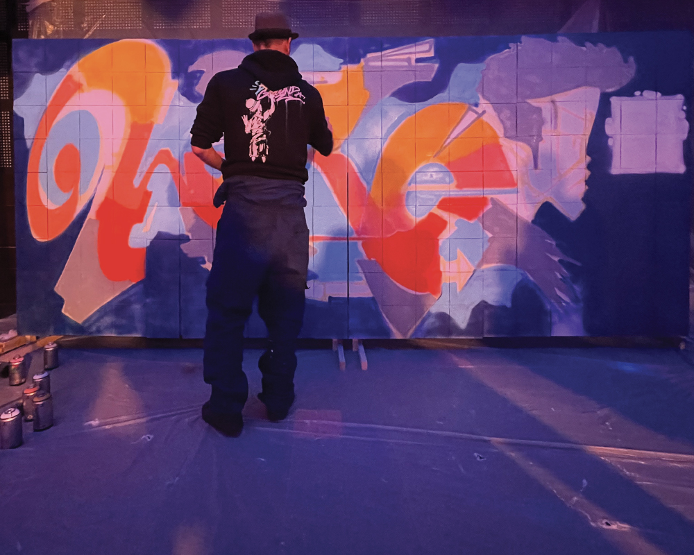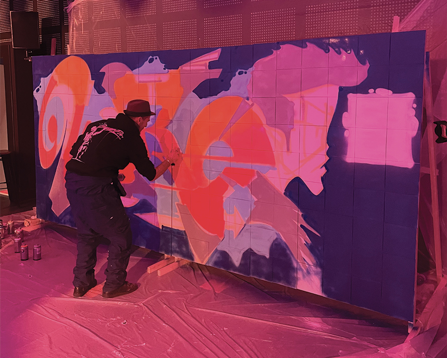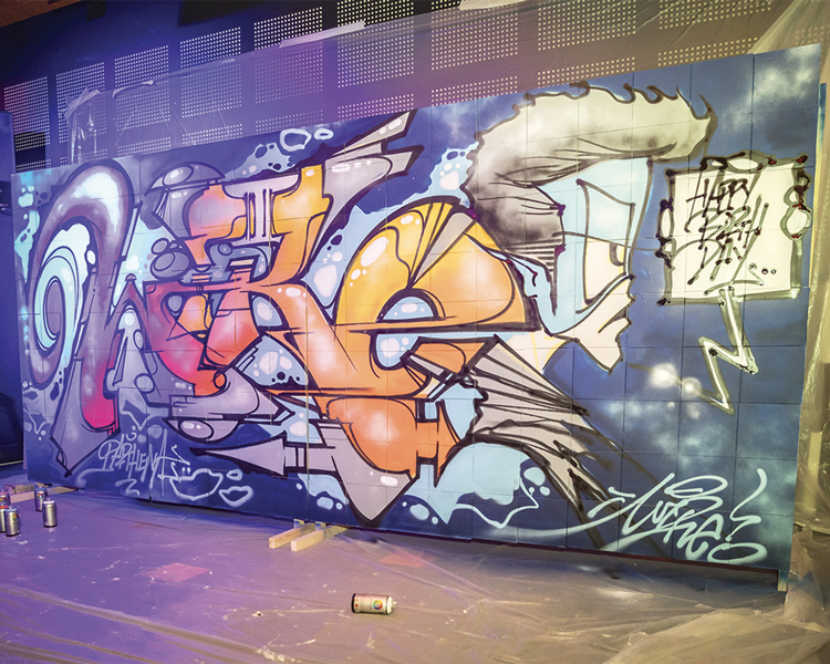 Au programme : atelier d'initiation au Graffiti sur un ensemble de cartons entoilés et live painting sur toile réalisé par l'artiste Wire.