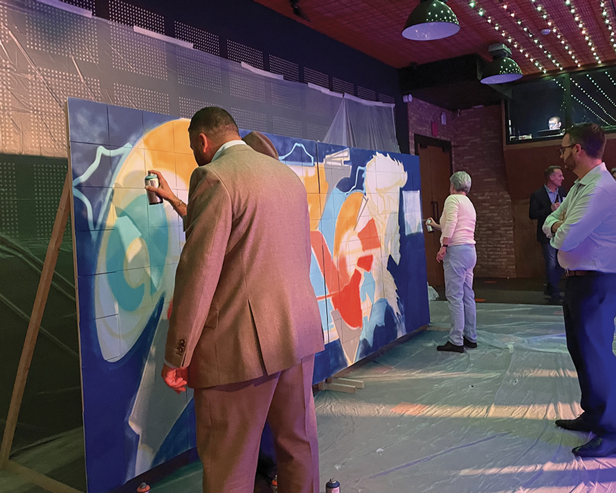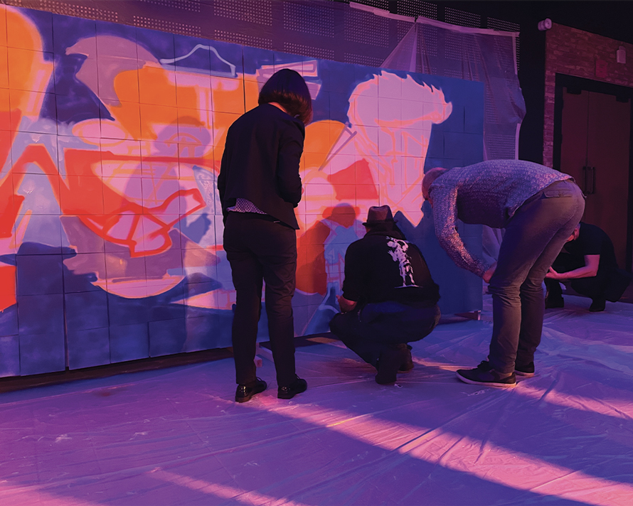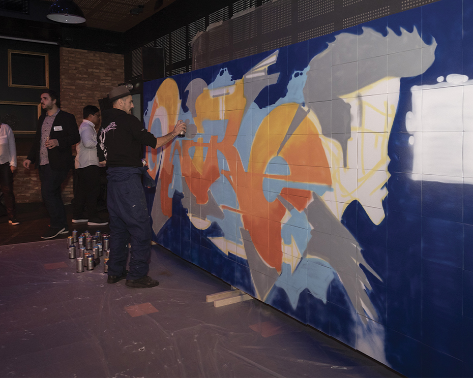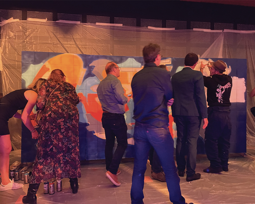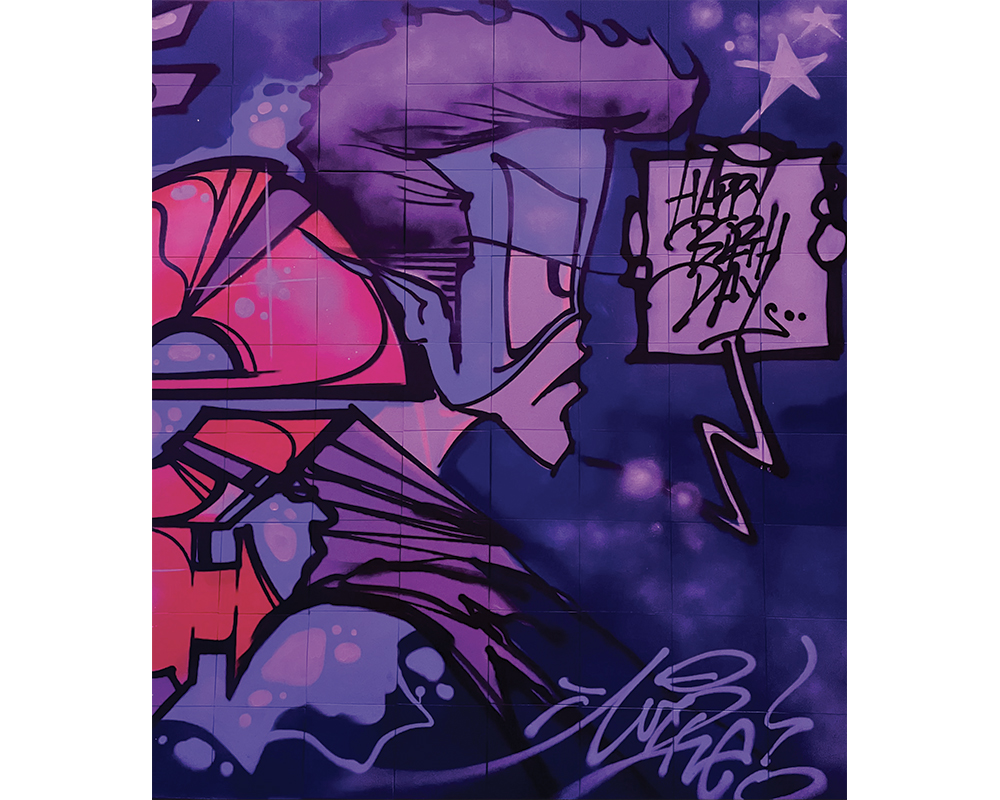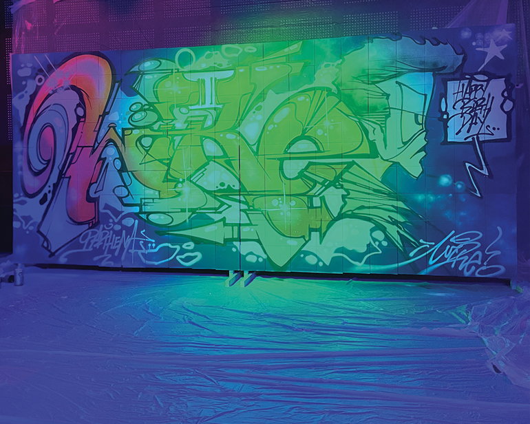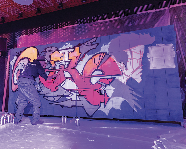 Au programme : atelier d'initiation au Graffiti sur un ensemble de cartons entoilés et live painting sur toile réalisé par l'artiste Wire.