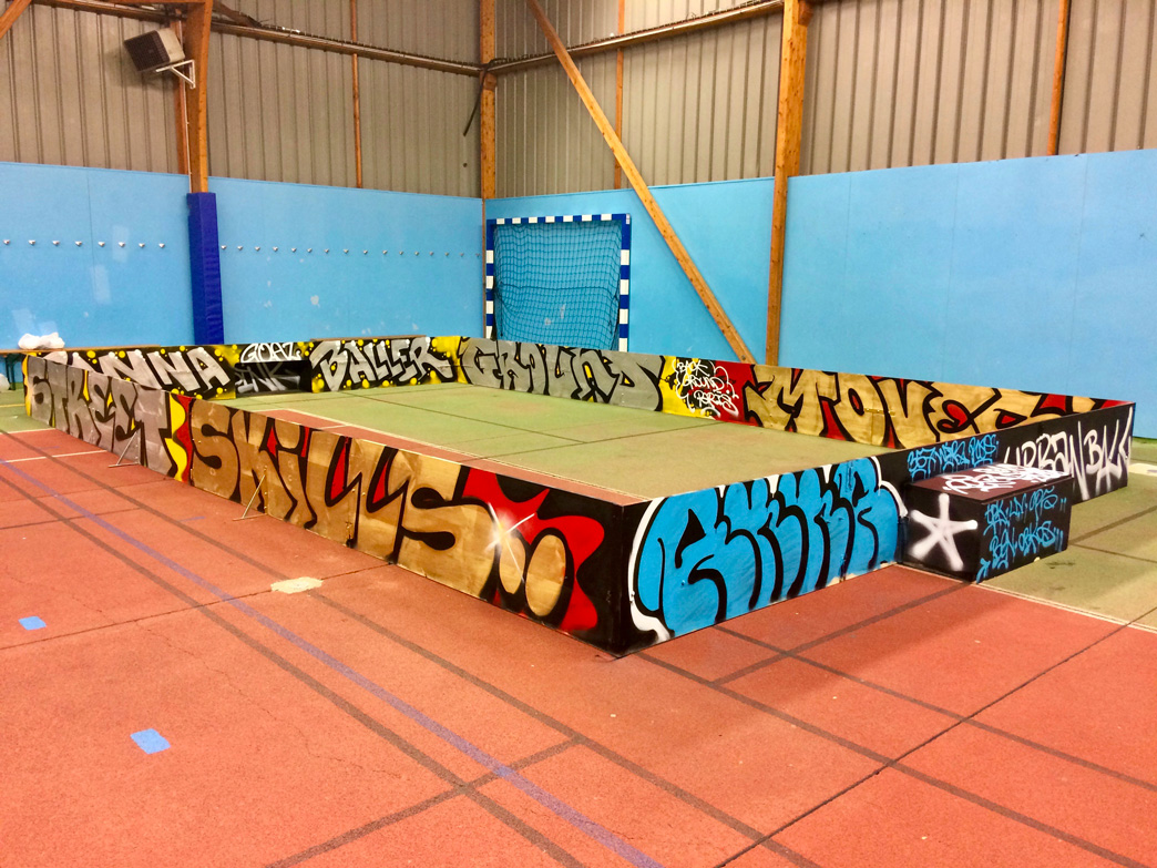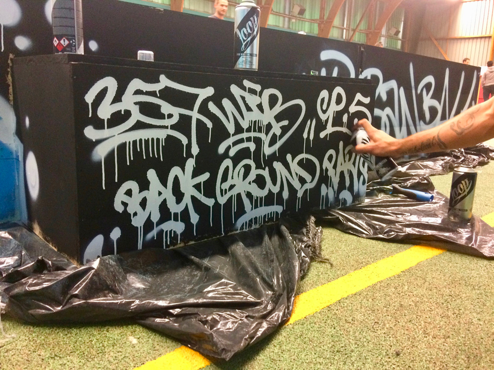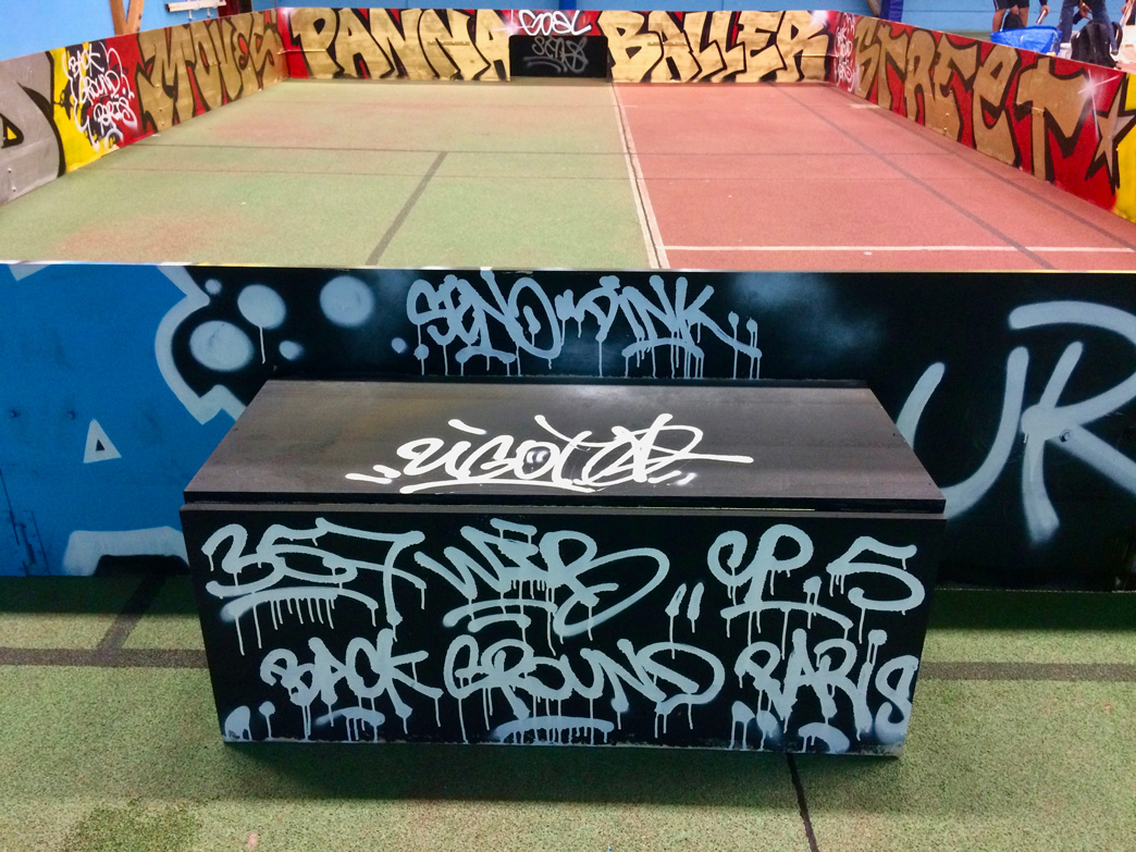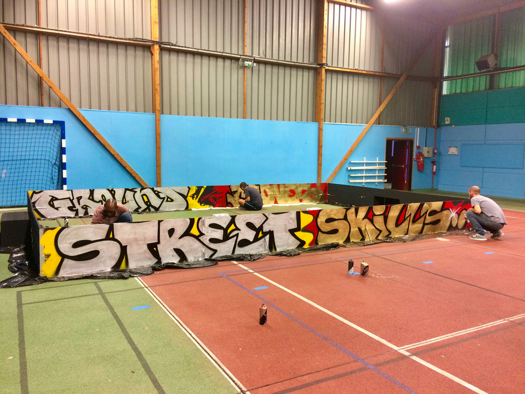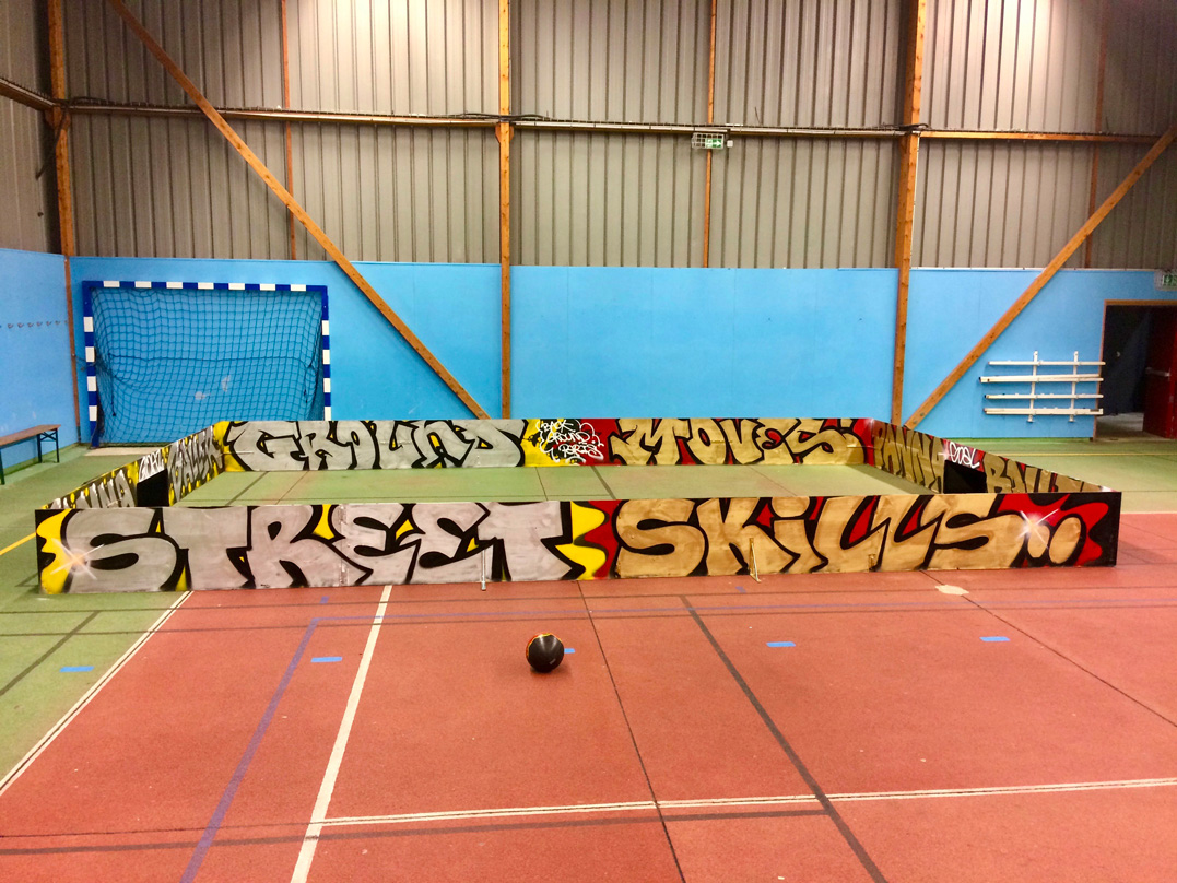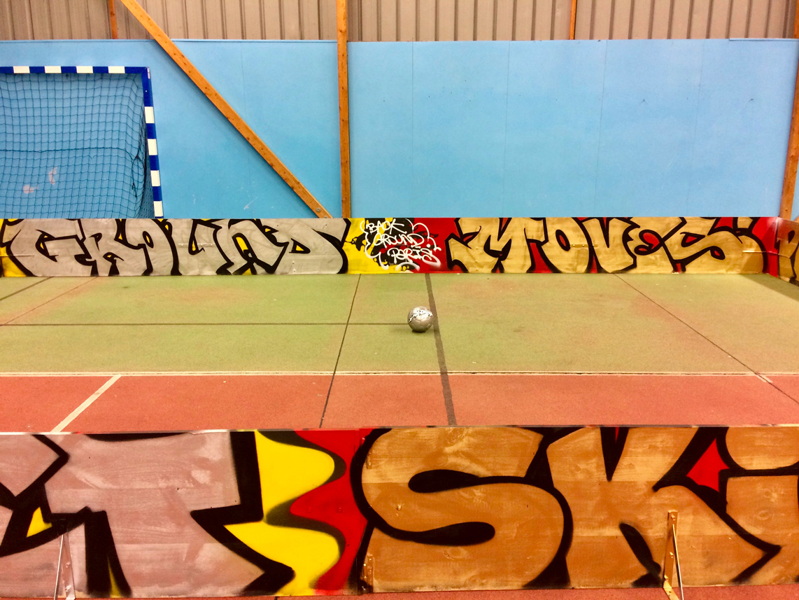 Lettrage « street » et couleurs vives réalisées par Dink, Res et Seno pour recréer une ambiance de football de rue.
