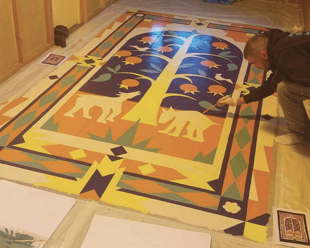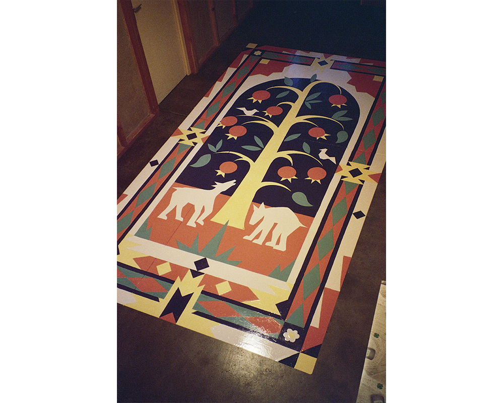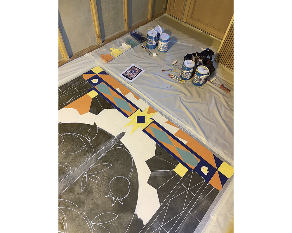 Un premier tapis aux formes géométriques faisant écho au motifs des tapis africains et un second tapis aux formes plus douces et mandalas, inspiré par les tapis indiens.