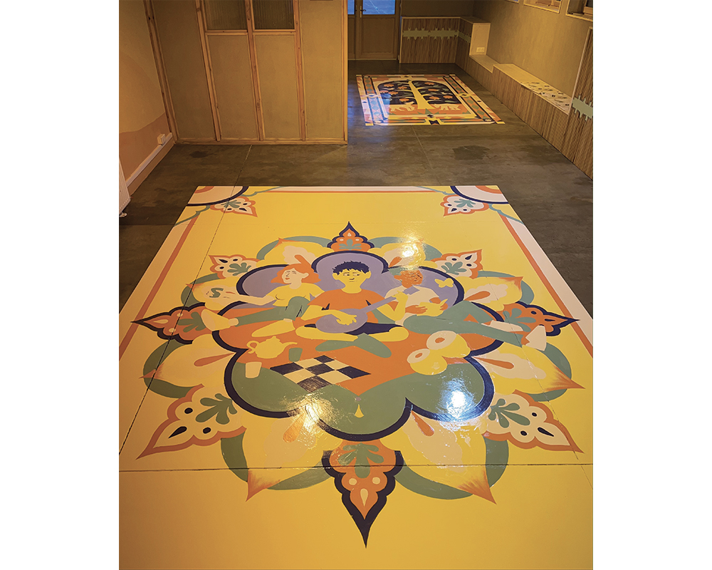Conception et réalisation de deux tapis au sol dans l'optique de rendre cette salle de repos plus accueillante et chaleureuse.