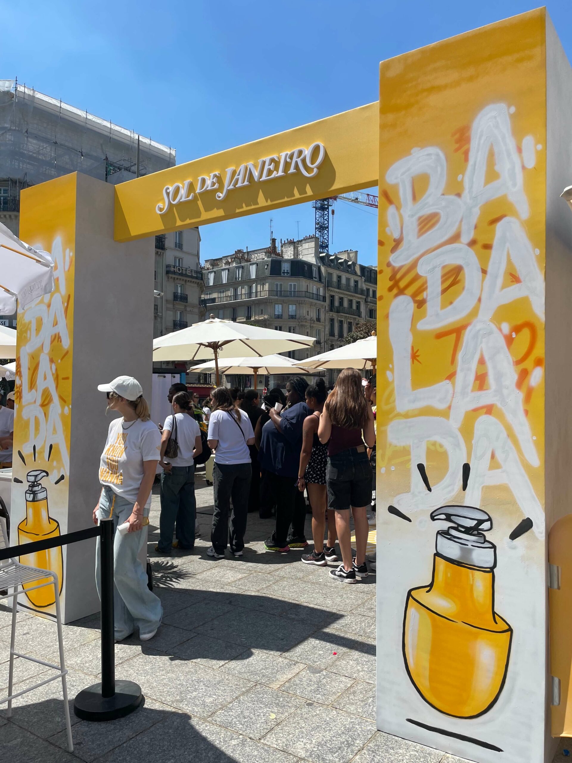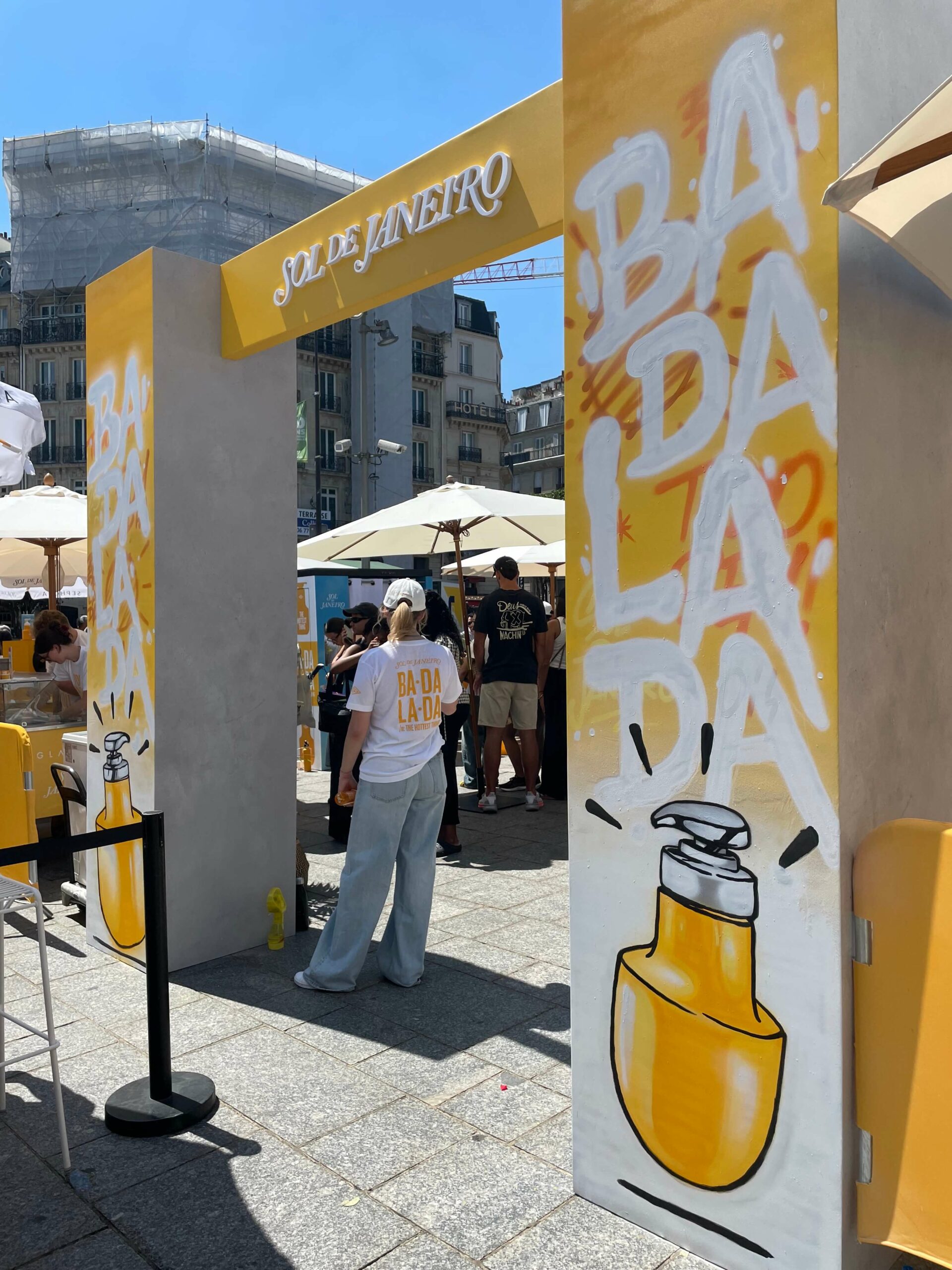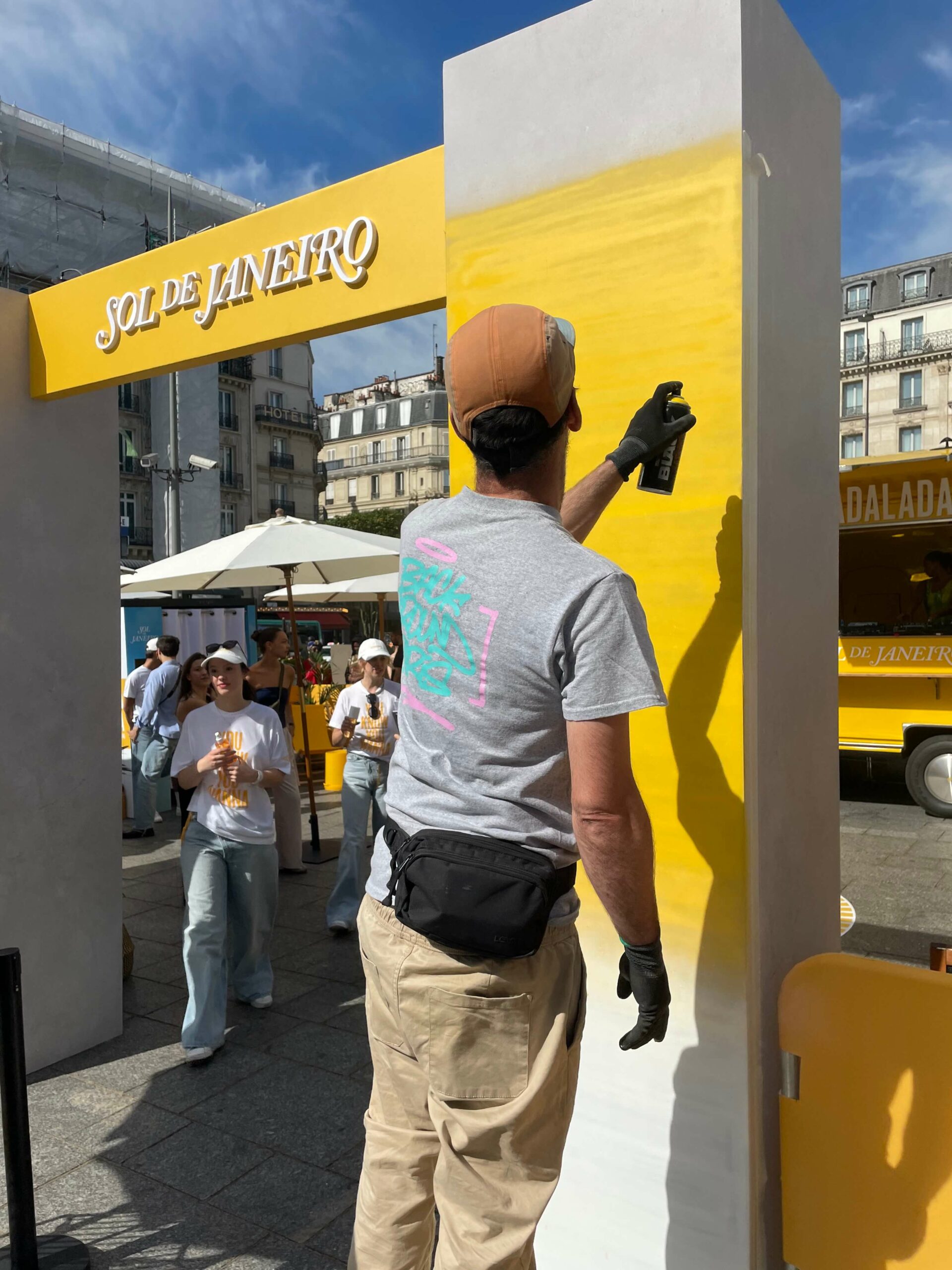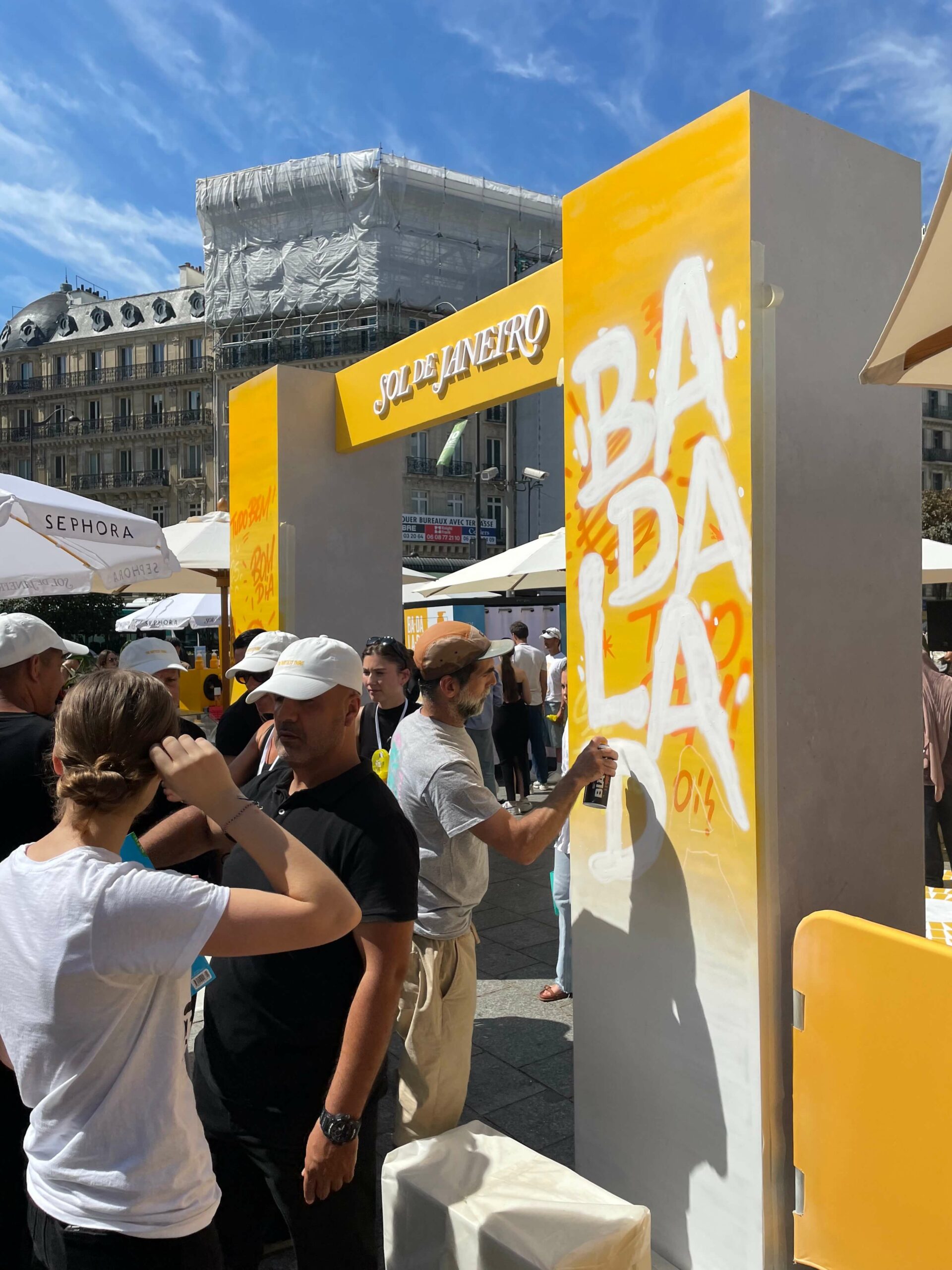 À l'occasion du lancement de son nouveau produit, la marque Sol de Janeiro nous a fait confiance pour un live painting street art à l'occasion de son pop-up store installé sur le parvis de la gare Saint-Lazare. C'est l'artiste Cannibal Letters qui a réinterprété leur slogan sur l'arche d'entrée du po-up, en s'appuyant sur la palette solaire de la marque.
