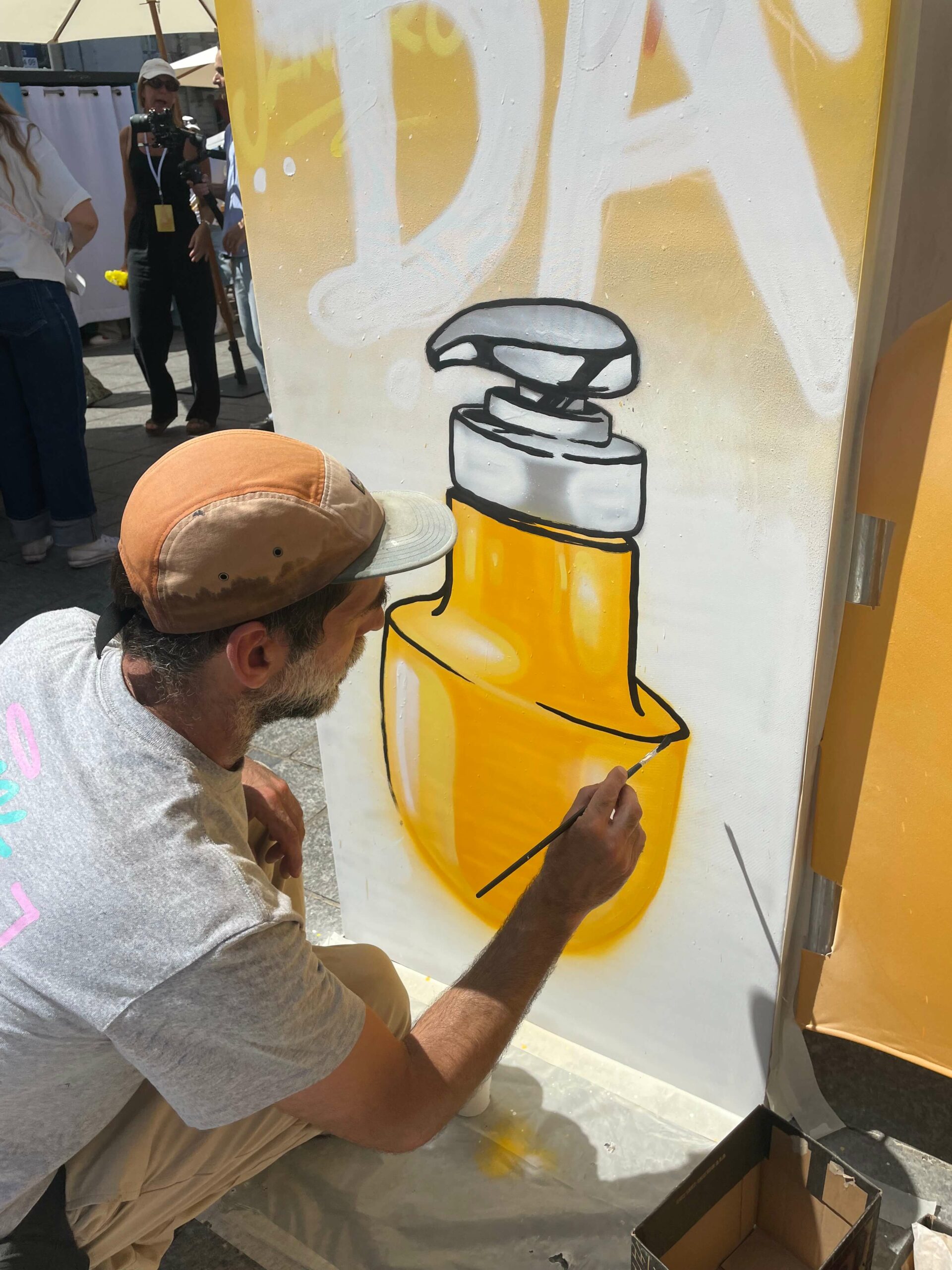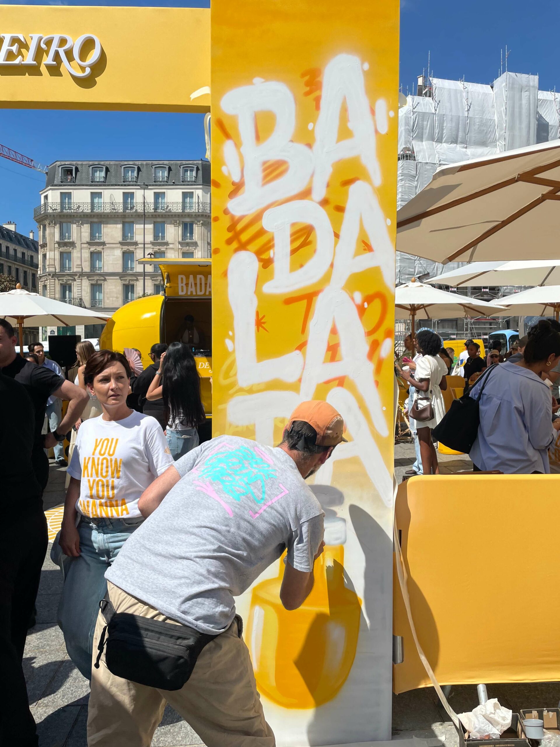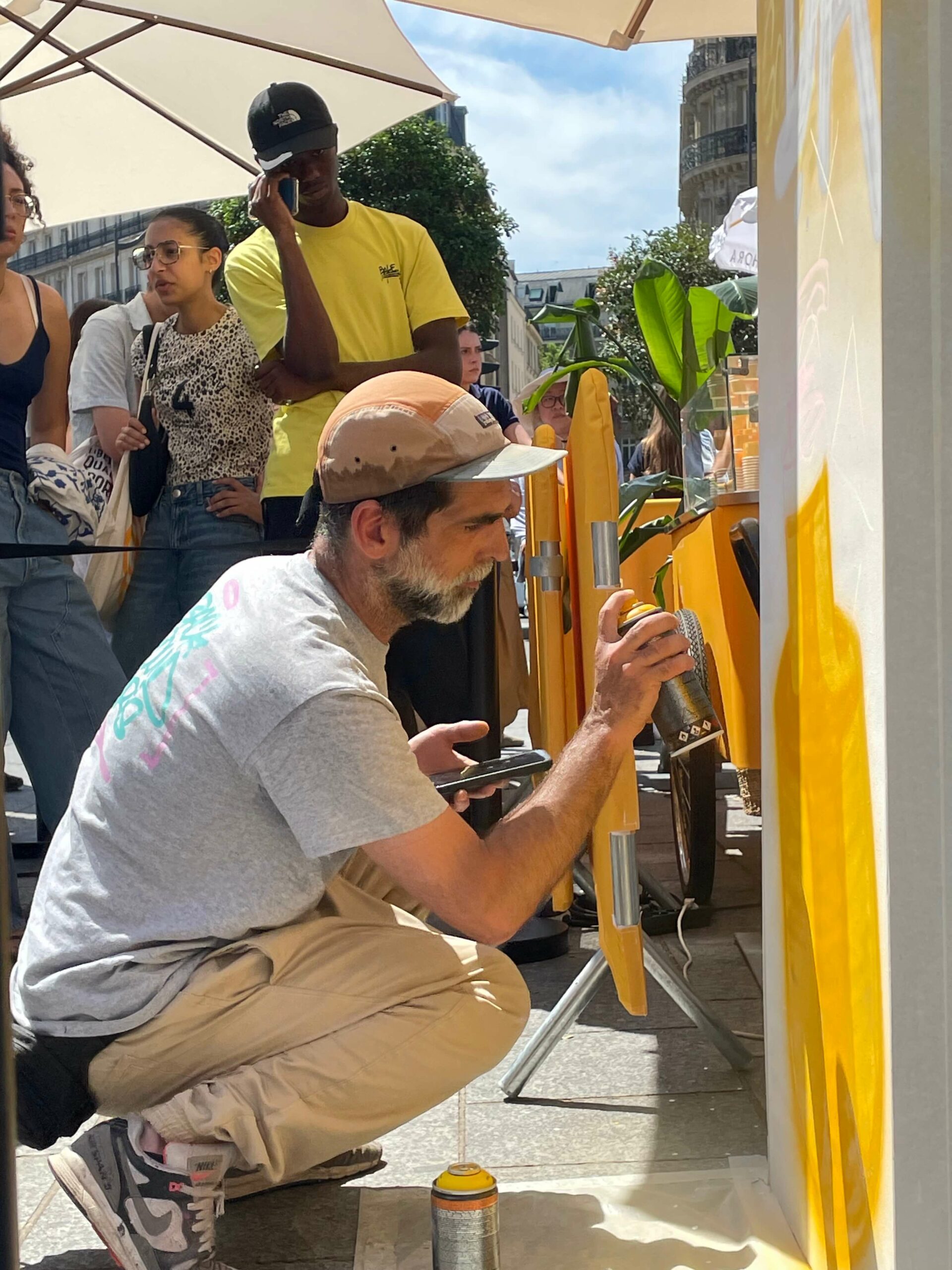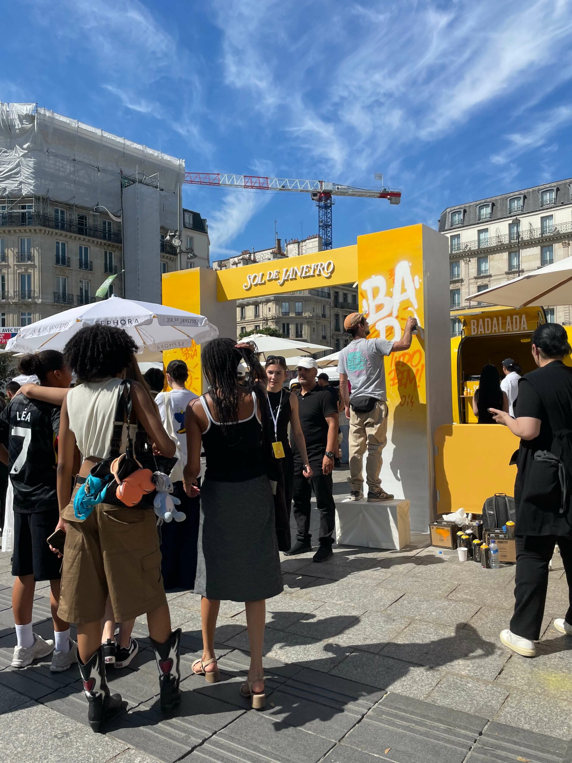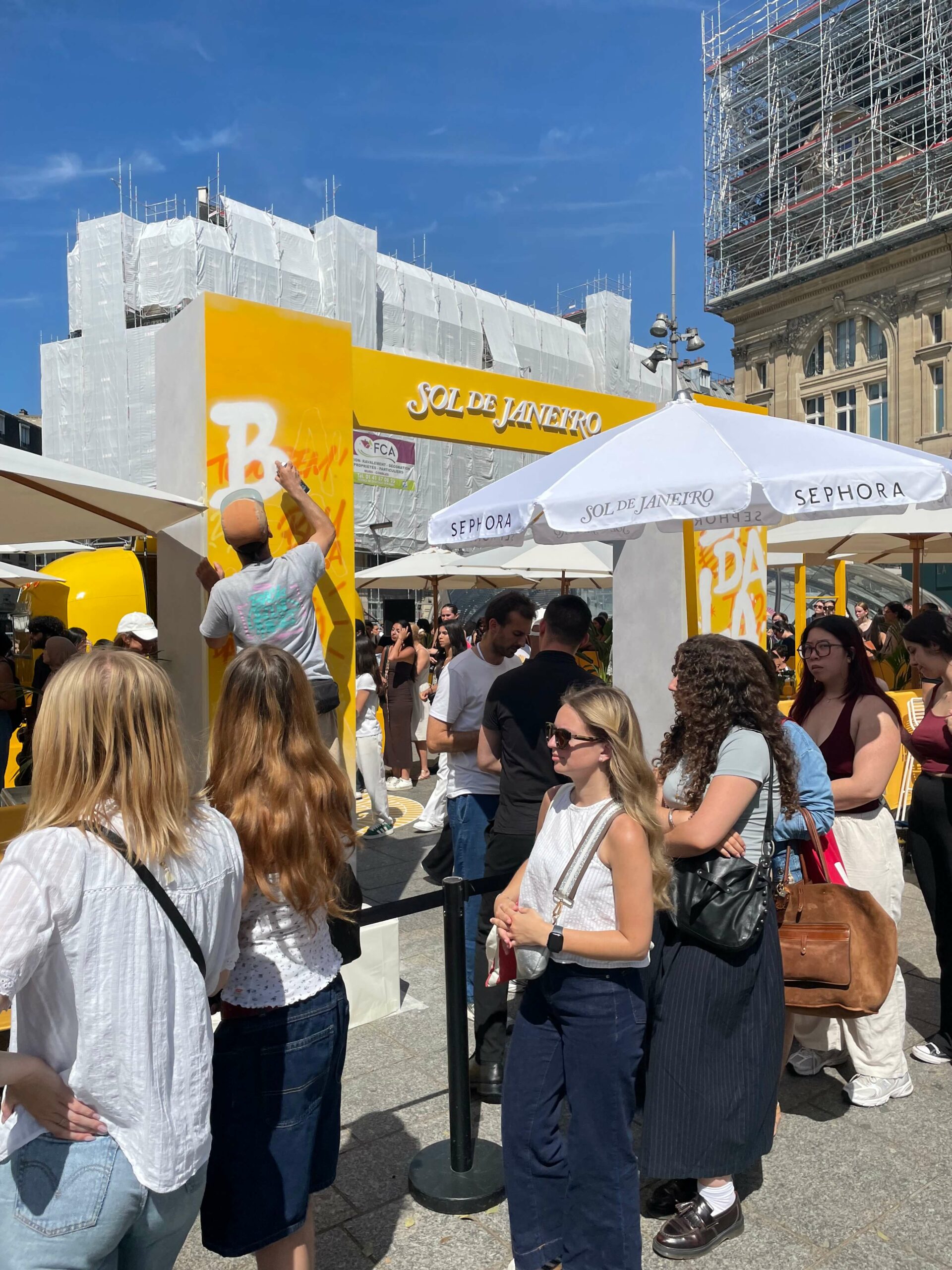 À l'occasion du lancement de son nouveau produit, la marque Sol de Janeiro nous a fait confiance pour un live painting street art à l'occasion de son pop-up store installé sur le parvis de la gare Saint-Lazare. C'est l'artiste Cannibal Letters qui a réinterprété leur slogan sur l'arche d'entrée du po-up, en s'appuyant sur la palette solaire de la marque.