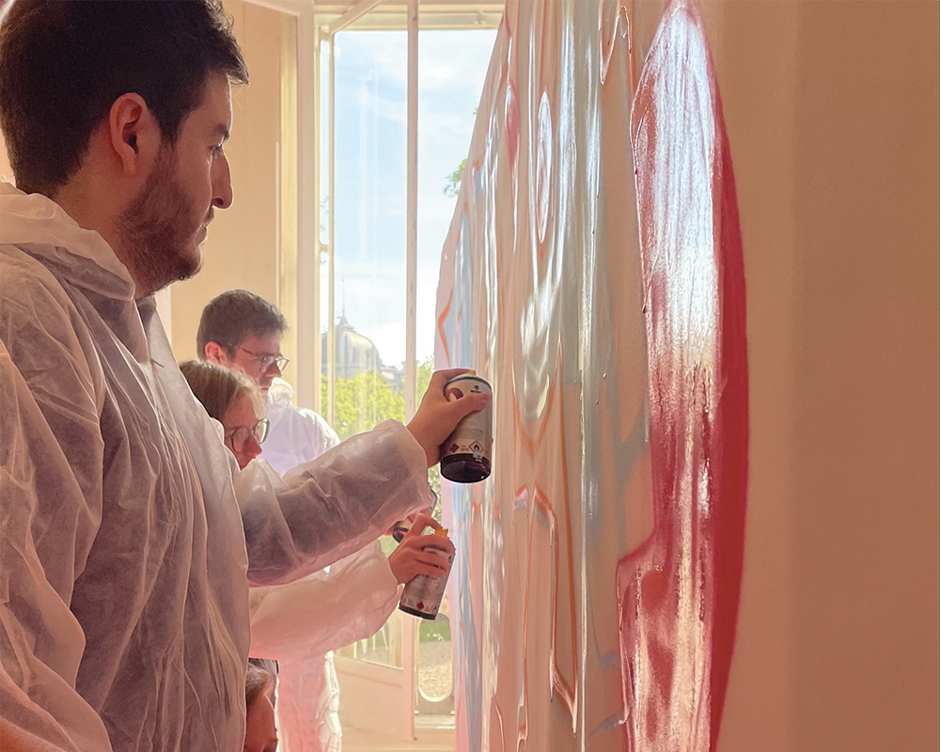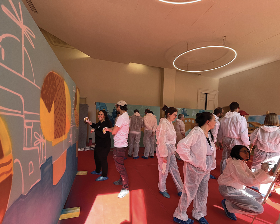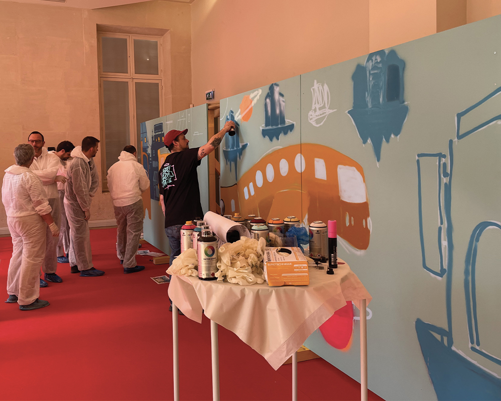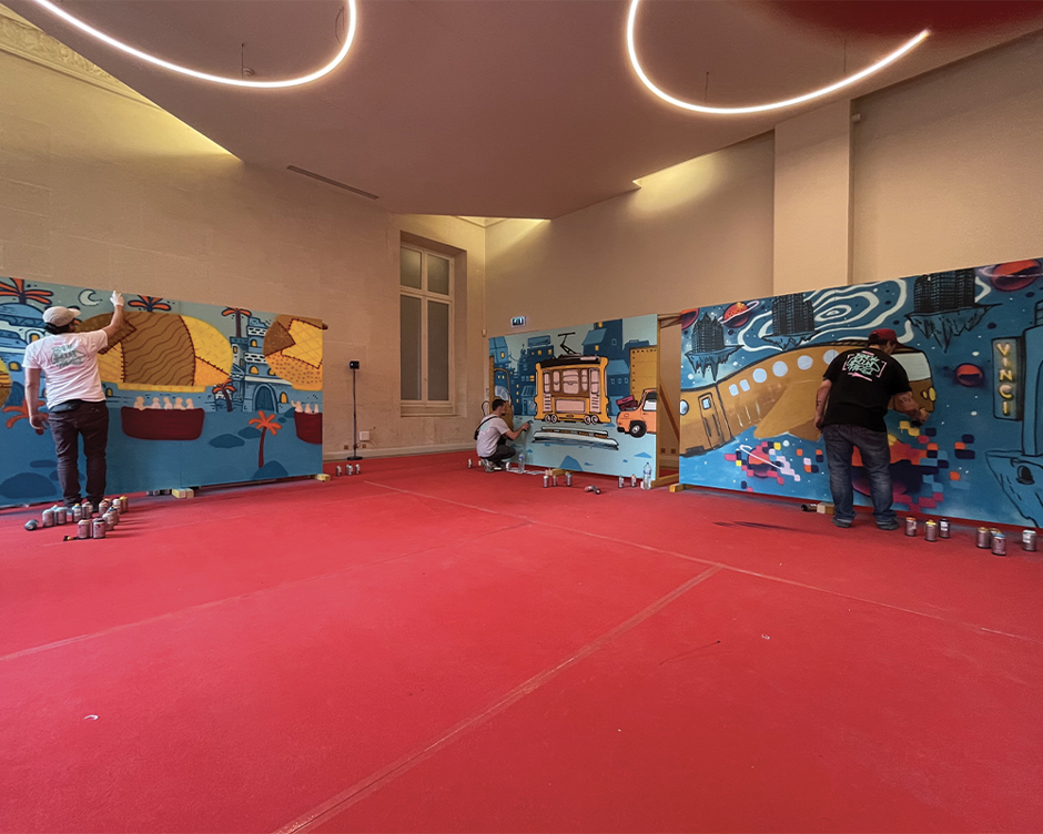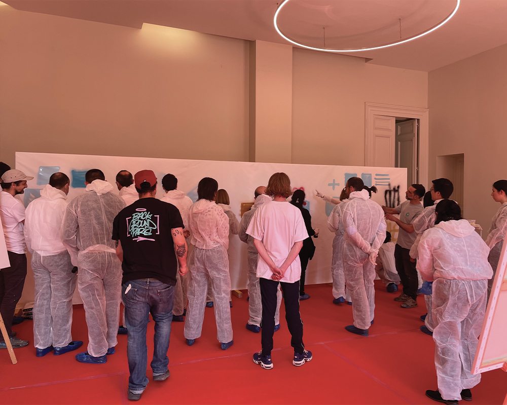 En souvenir de cette belle journée de partage, les peintures collaboratives réalisées sur trois panneaux de bois (200 x 300 cm chaque) sont désormais exposées au siège de l'entreprise.
