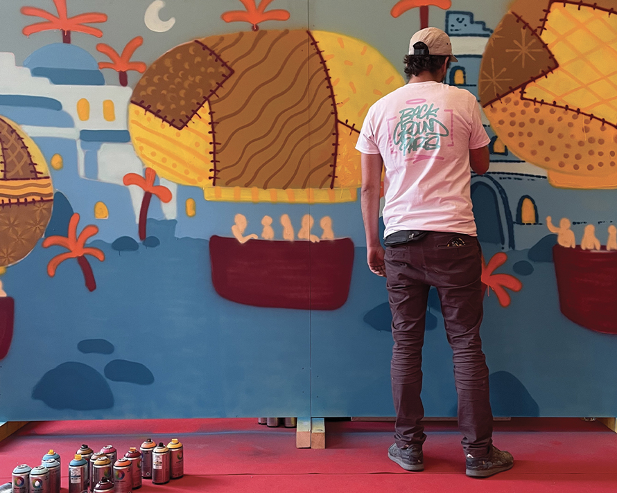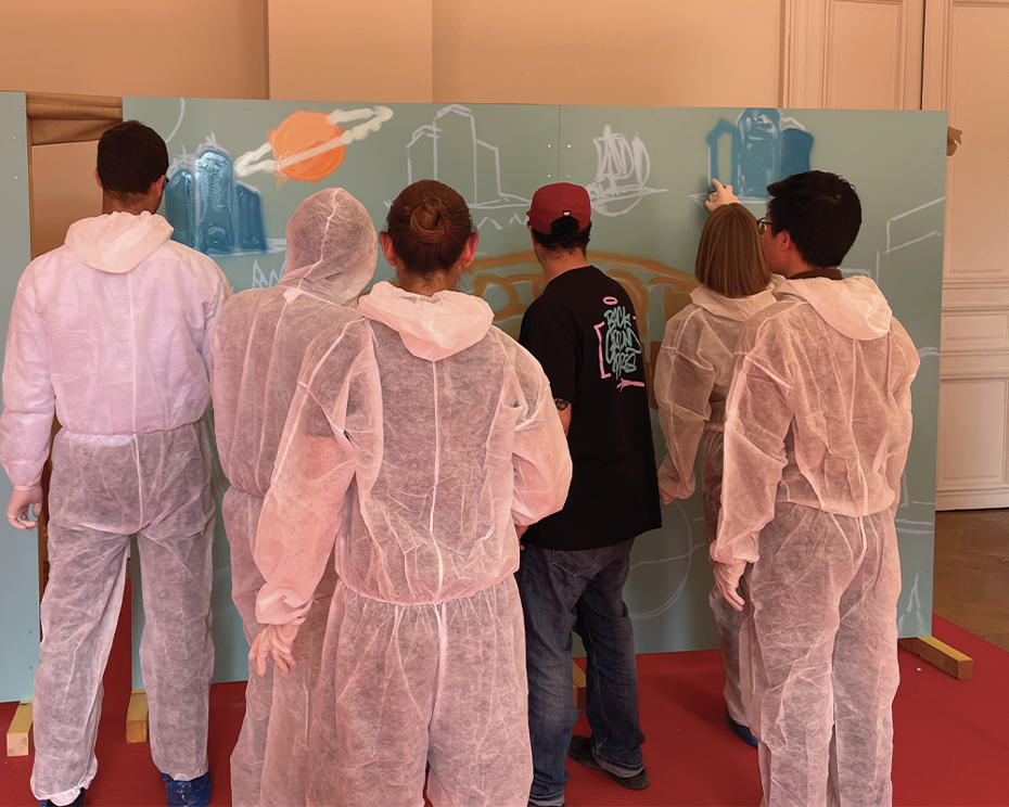 Atelier d'initiation pour 80 personnes encadré par les artistes Jo Ber, Cannibal Letters et Haribow.